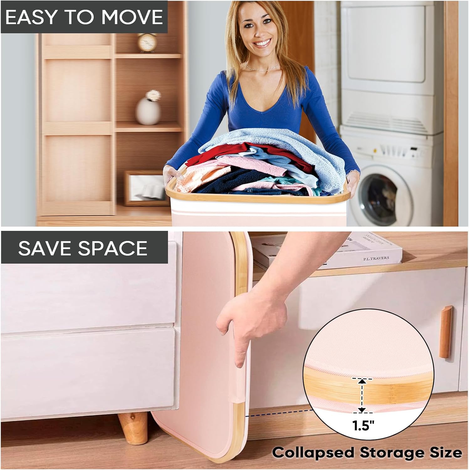 • [DURABLE AND ECO-FRIENDLY] We care about the environment, which is why our laundry hamper is made from sustainable bamboo rim. Bamboo is known for its exceptional strength and durability, ensuring this clothes hamper's handle will withstand the test of time. By choosing our eco-friendly laundry basket organizer, you're making a conscious decision to reduce your carbon footprint.