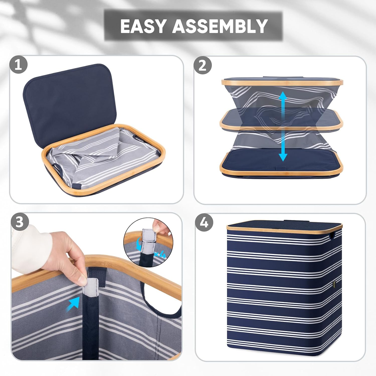 • [DURABLE AND ECO-FRIENDLY] We care about the environment, which is why our laundry hamper is made from sustainable bamboo rim. Bamboo is known for its exceptional strength and durability, ensuring this clothes hamper's handle will withstand the test of time. By choosing our eco-friendly laundry basket organizer, you're making a conscious decision to reduce your carbon footprint.