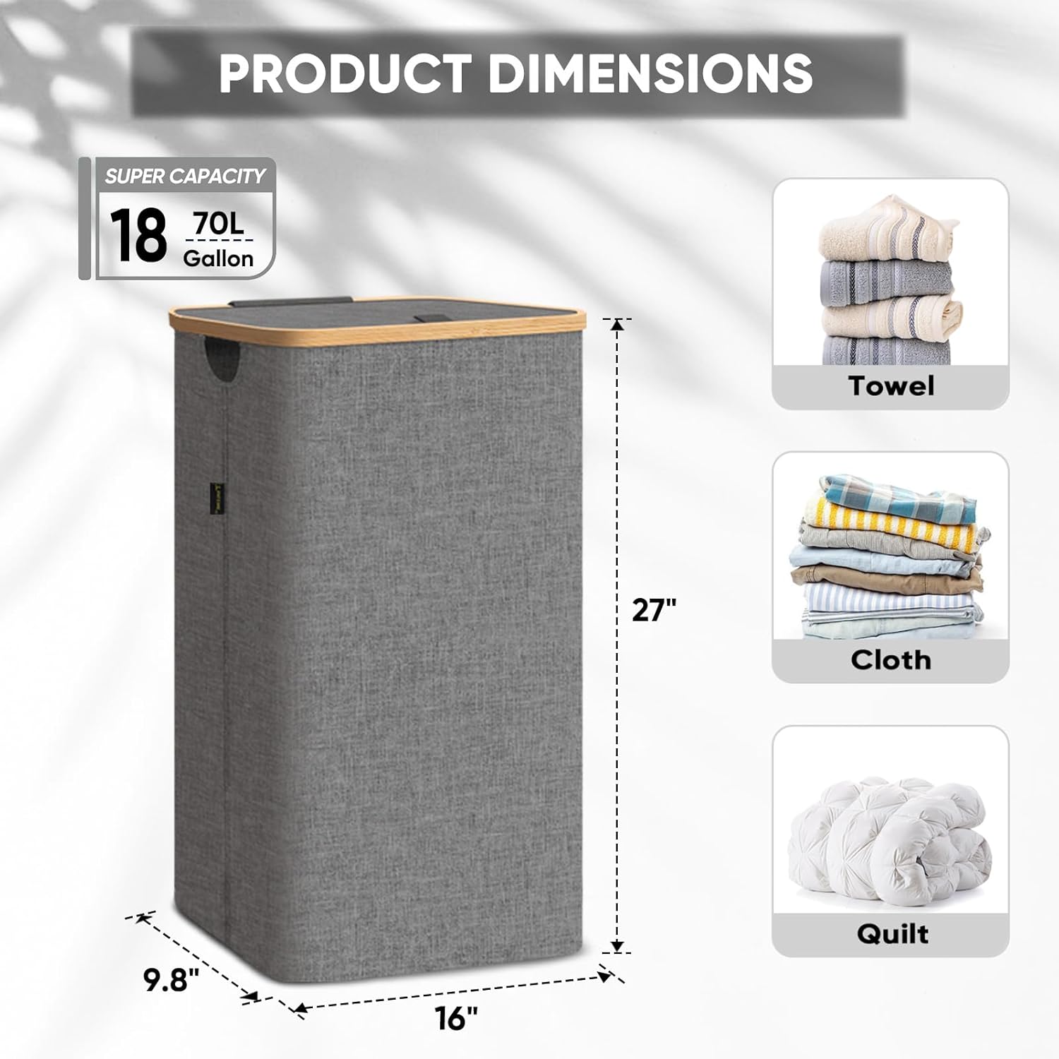 • [AMPLE CAPACITY AND EASY ACCESS] With 18 Gallon/26 Gallon/36 Gallon (70L/100 L/140 L) size option, the hampers for laundry provide ample capacity to hold all your dirty clothes, towels, bedding, and more. The lightweight lid is easy to open and close, providing quick and convenient access to your laundry.