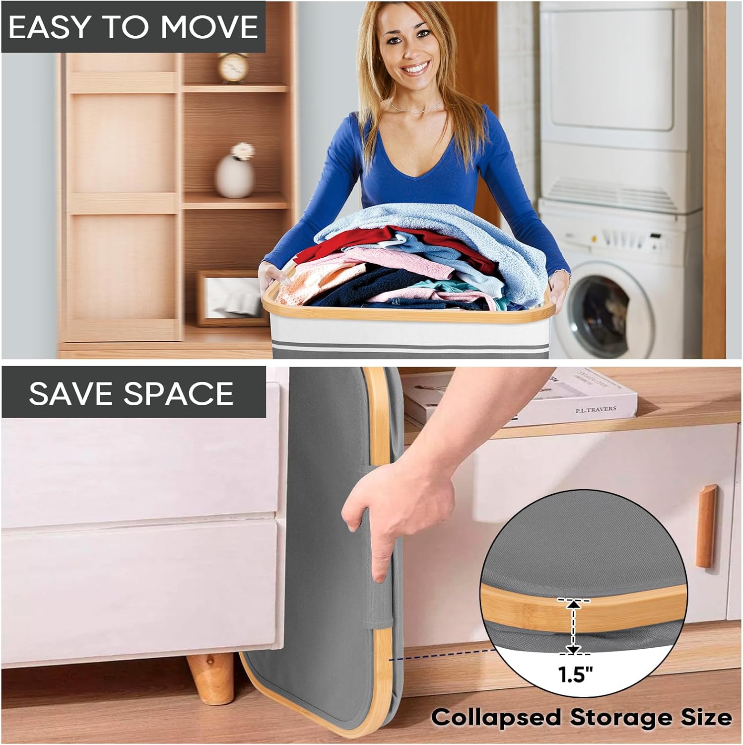 • [DURABLE AND ECO-FRIENDLY] We care about the environment, which is why our laundry hamper is made from sustainable bamboo rim. Bamboo is known for its exceptional strength and durability, ensuring this clothes hamper's handle will withstand the test of time. By choosing our eco-friendly laundry basket organizer, you're making a conscious decision to reduce your carbon footprint.