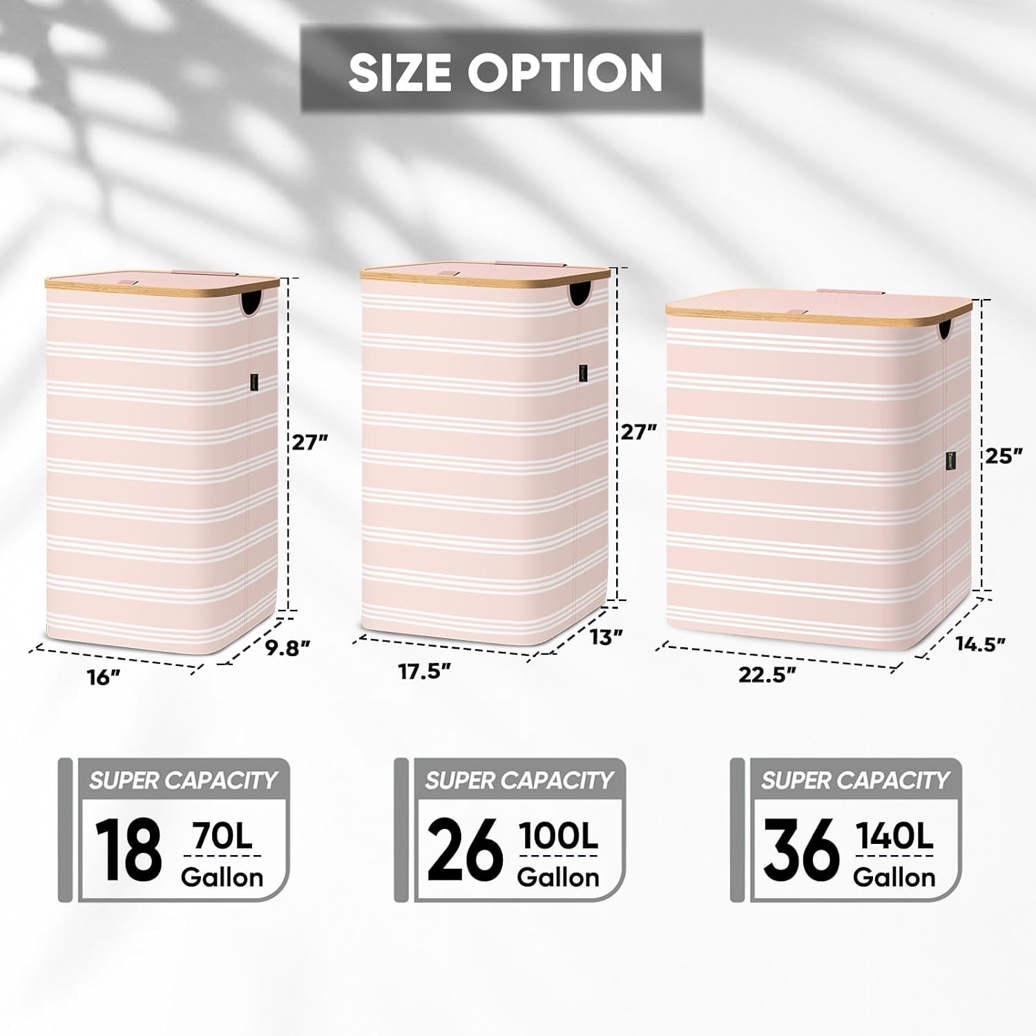 • [AMPLE CAPACITY AND EASY ACCESS] With 18 Gallon/26 Gallon/36 Gallon (70L/100 L/140 L) size option, the hampers for laundry provide ample capacity to hold all your dirty clothes, towels, bedding, and more. The lightweight lid is easy to open and close, providing quick and convenient access to your laundry.