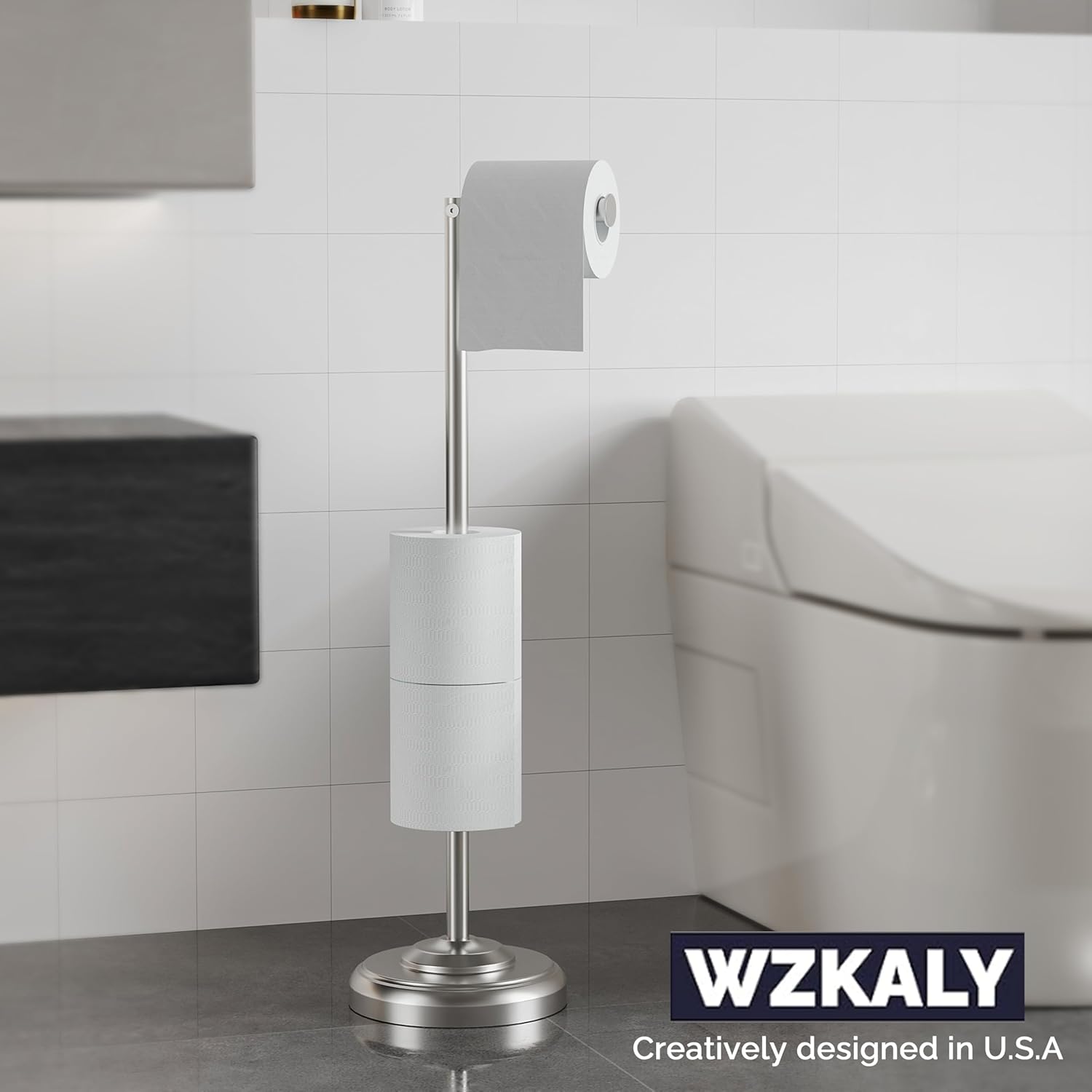 - GENEROUS STORAGE CAPACITY: This freestanding toilet paper holder can store up to 4 extra toilet paper rolls, providing convenient storage and ensuring you never run out of toilet paper. Keep your bathroom organized and fully stocked with this space-saving toilet paper storage organizer.