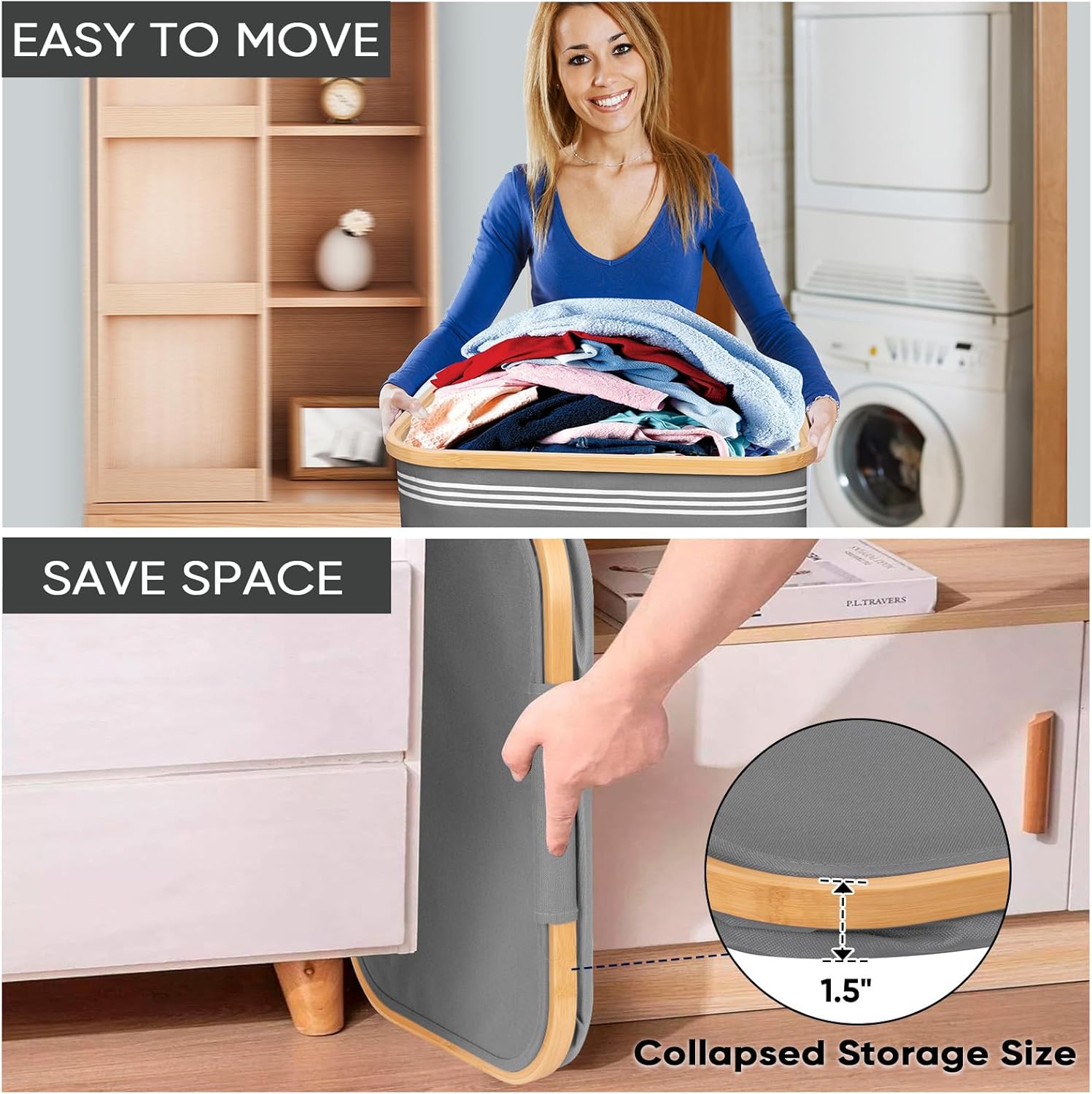 • [DURABLE AND ECO-FRIENDLY] We care about the environment, which is why our laundry hamper is made from sustainable bamboo rim. Bamboo is known for its exceptional strength and durability, ensuring this clothes hamper's handle will withstand the test of time. By choosing our eco-friendly laundry basket organizer, you're making a conscious decision to reduce your carbon footprint.