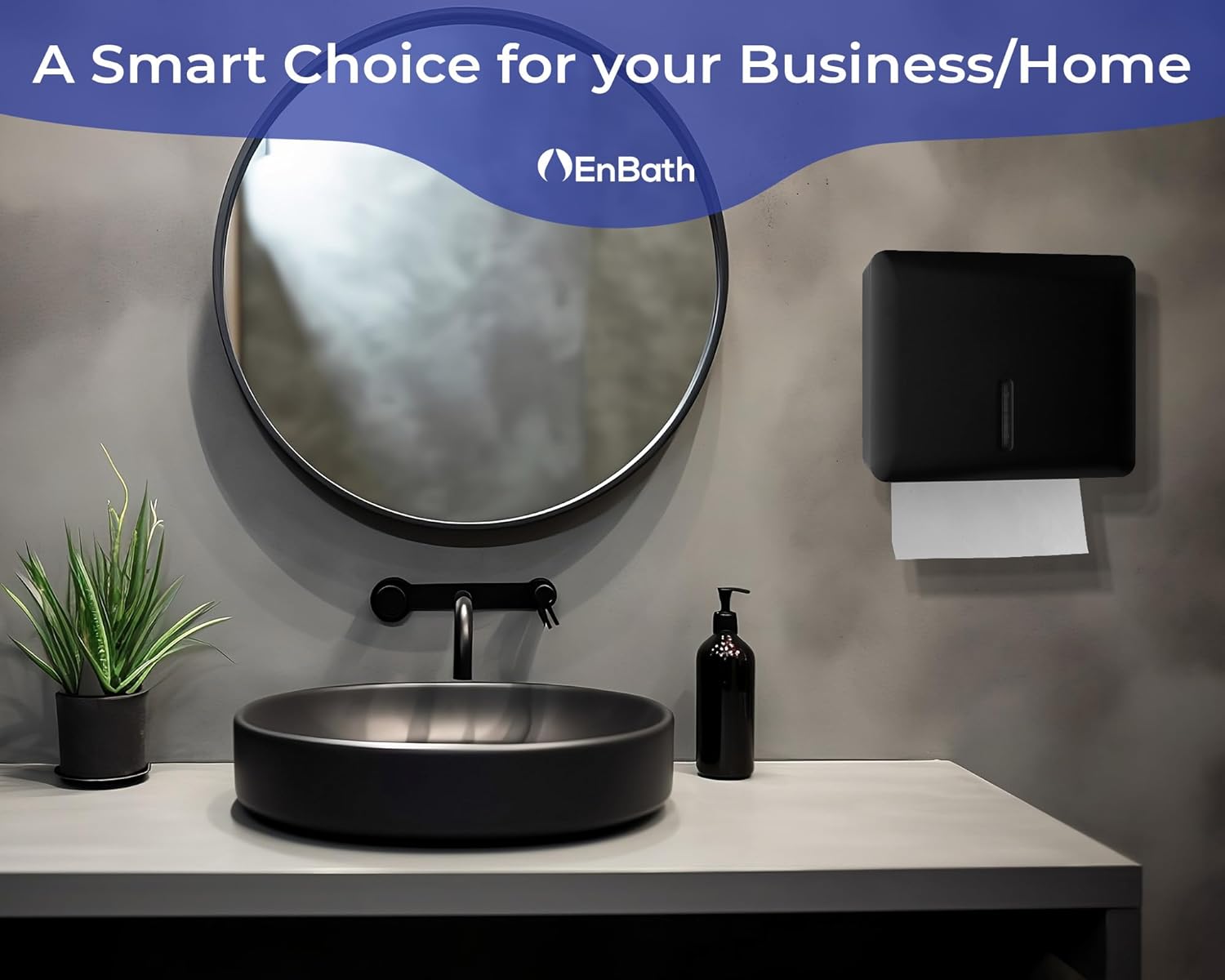 Multifold Paper Towel Dispenser Wall Mount (Black, 2-Pack), Folded Hand Towel Dispenser for Bathroom/Restroom, Commercial Paper Towel Holder, Trifold Paper Towels Dispenser by EnBath