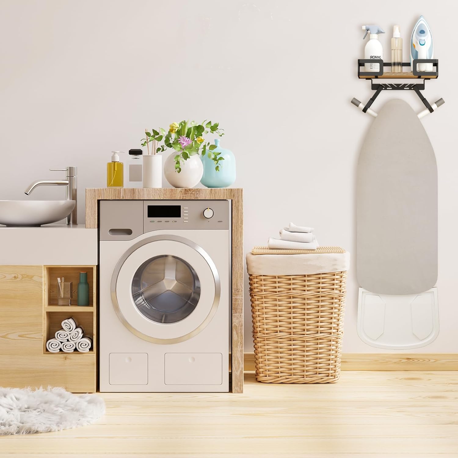 • WIDENED FRAME IS MORE STRONG: The laundry room accessories ironing board are made of iron and natural wood. The wider frame makes it more sturdy and durable with 2 wider hooks. It creates a rustic and modern style while keeping your storage items safe.
