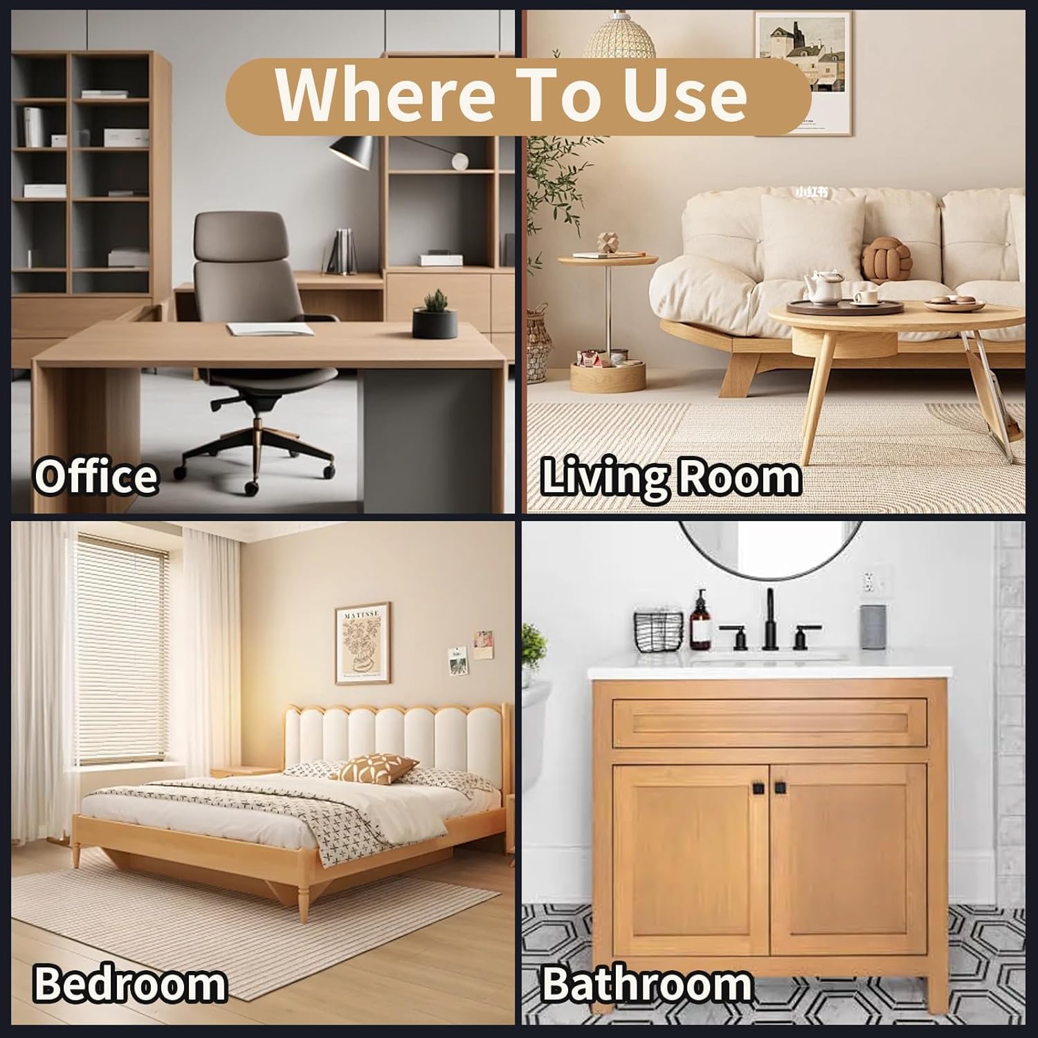 • Unique oak color series in 7 colors: Whitewash Oak, Natural Oak, Golden Oak, Ivory Oak, Walnut Oak, Espresso Oak, Black Oak
