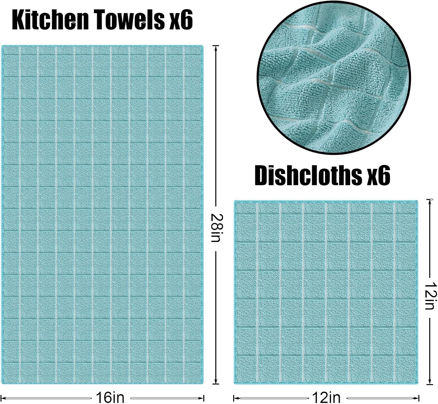 • Versatile Usage: The collection includes 6 Pack 16 x 28 Inches & 6 Pack 12 X 12 Inches, Not just limited to the kitchen, these versatile dishcloths can be used for a variety of tasks. From wiping down surfaces in the bathroom to cleaning up spills in the living room, they are a handy addition to any household