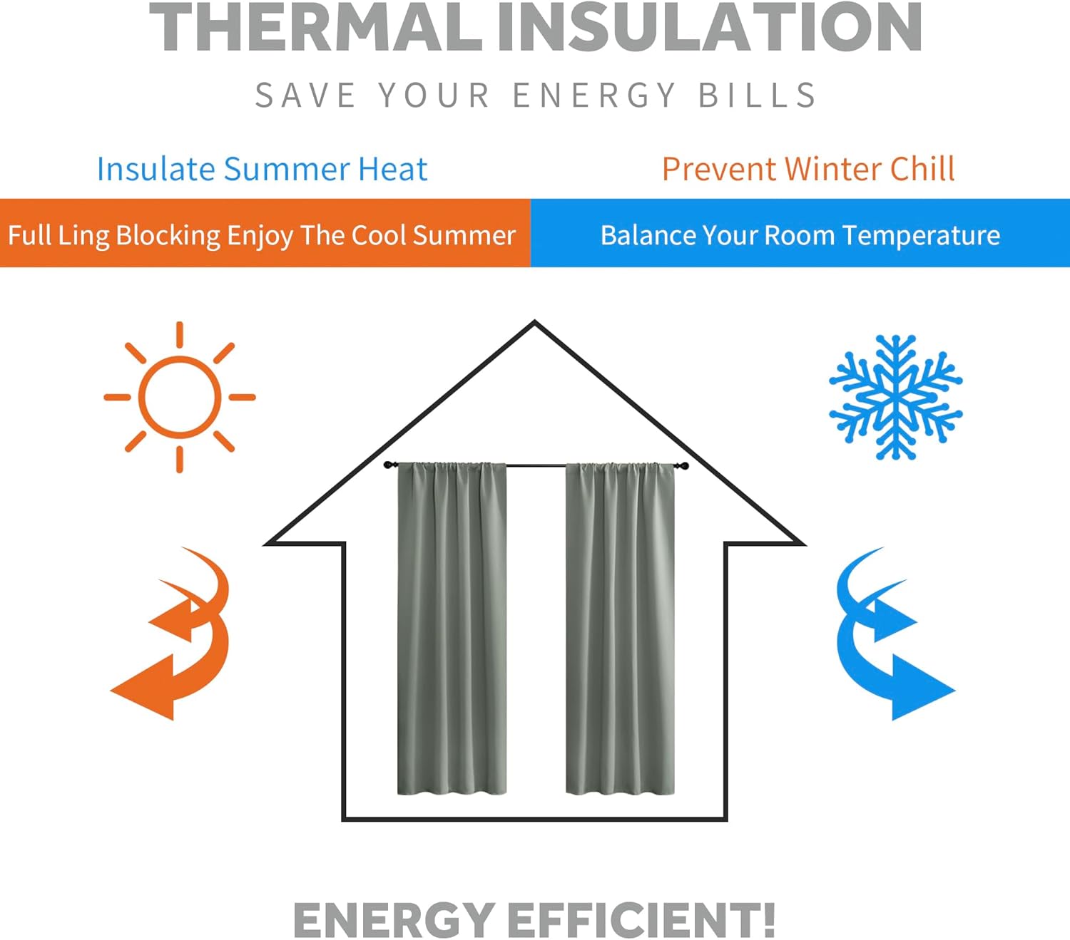 • ENERGY SMART - Curtains are work well on balance the temperature inside and outside by insulating summer heat and winter chill, so that these room darkening curtains can reduce the energy waste and save the daily bill effectively.