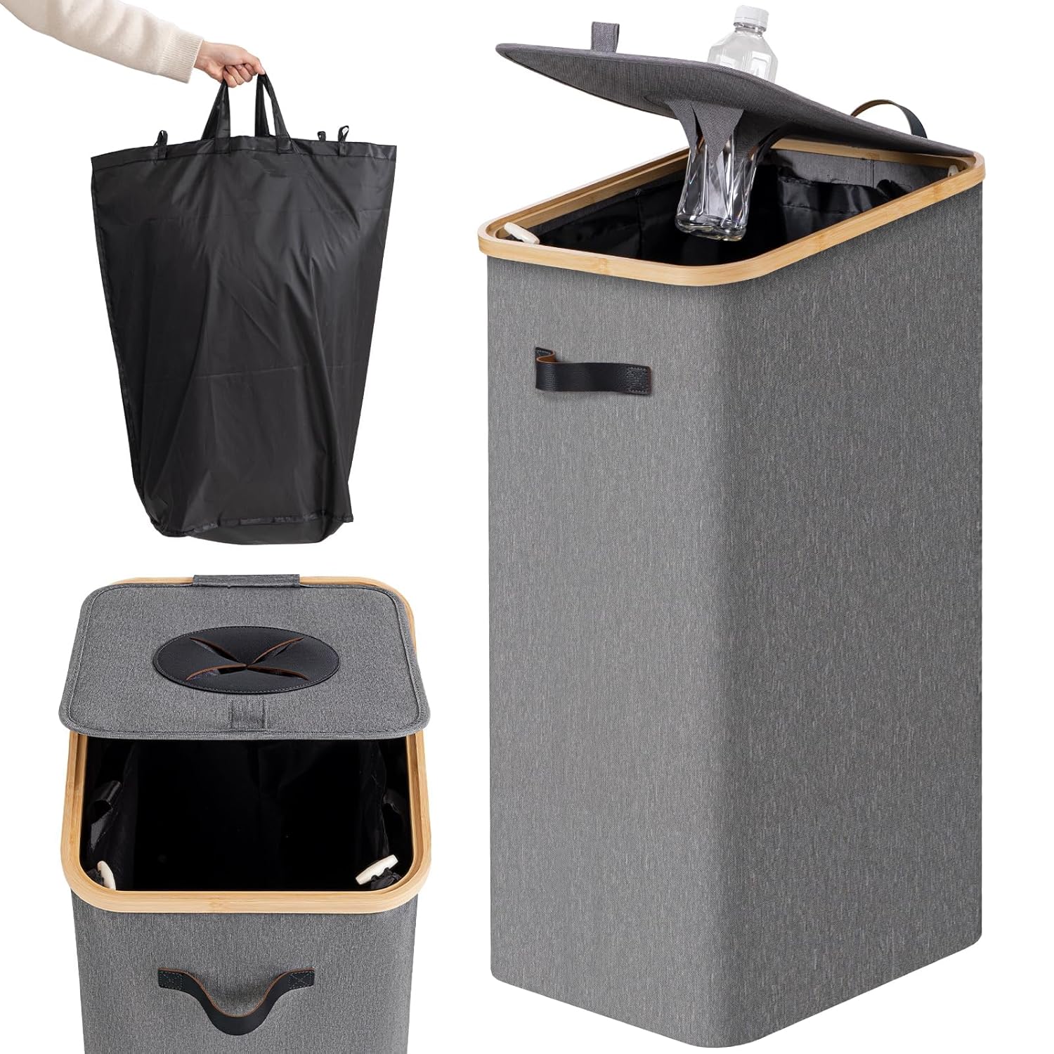 • MULTIFUNCTIONAL DEPOSIT BAGS- Leather carrying handles on both sides allow for easy handling. In addition to their main function as kitchen recycle bin, our indoor recycling bin can also be used to store dirty clothes, old newspapers, pet supplies or toy baskets, offering a variety of solutions for your storage needs
