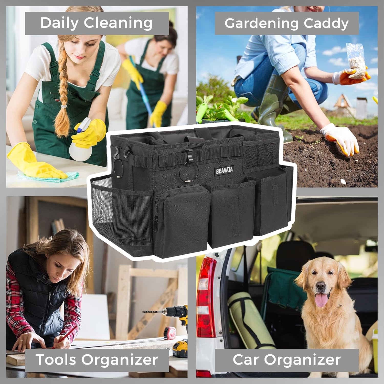 • Wide Application: The cleaning supplies carrier is a great choice for storing cleaning supplies like sprays, detergents, brushes, trash bags, dusters, towel, cloth, gloves and more. It can be applied in various occasions such as doing housework, car washing, garden cleaning, painting, and etc