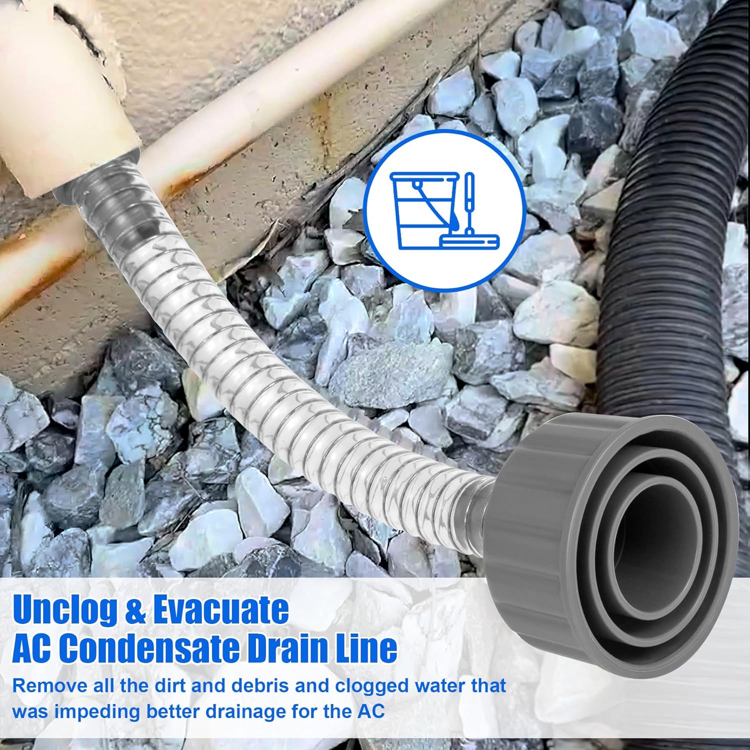 • Increase visibility:Our air conditioner drain cleaning tool has a transparent section in the middle so that you can see more intuitively how it works.Clear tube for added visibility of removed sediment.