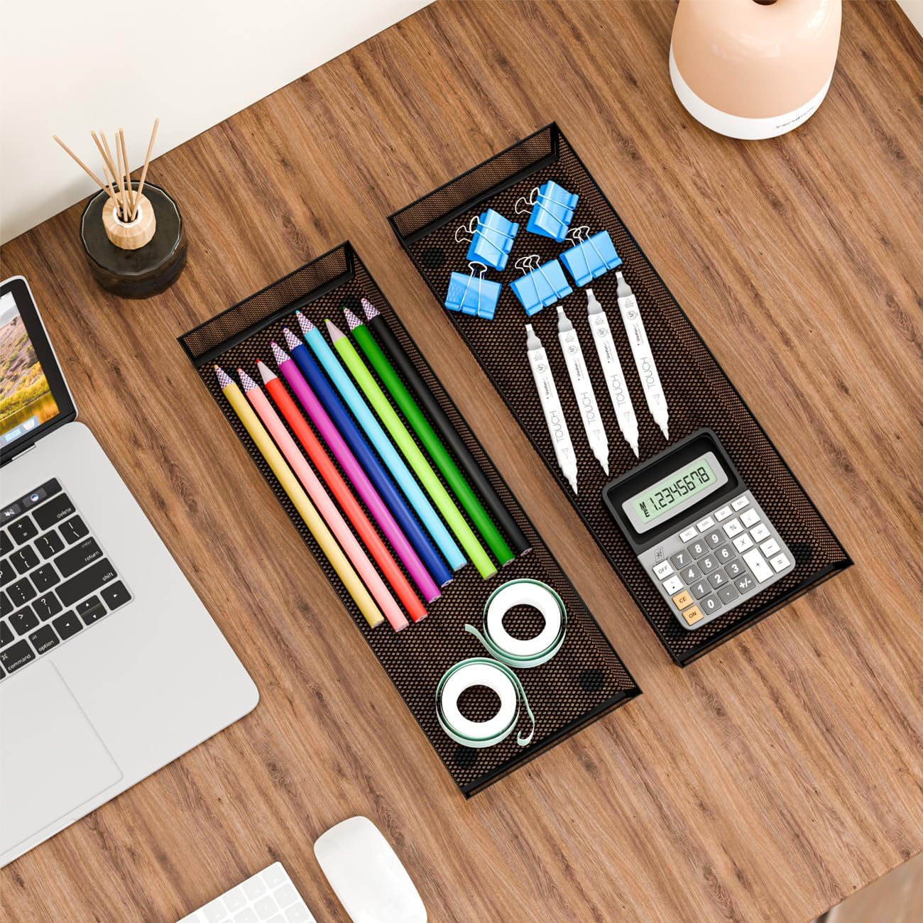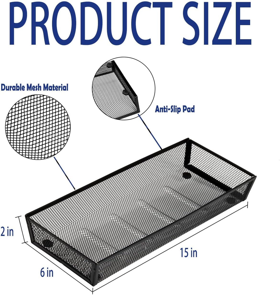 BYCY Silverware Drawer Organizer, Mesh Utensil Organizer for Kitchen Storage, Black Steel Metal Mesh Tray for Flatware Fork Spoon Knife… (15 * 6-4P-Black)