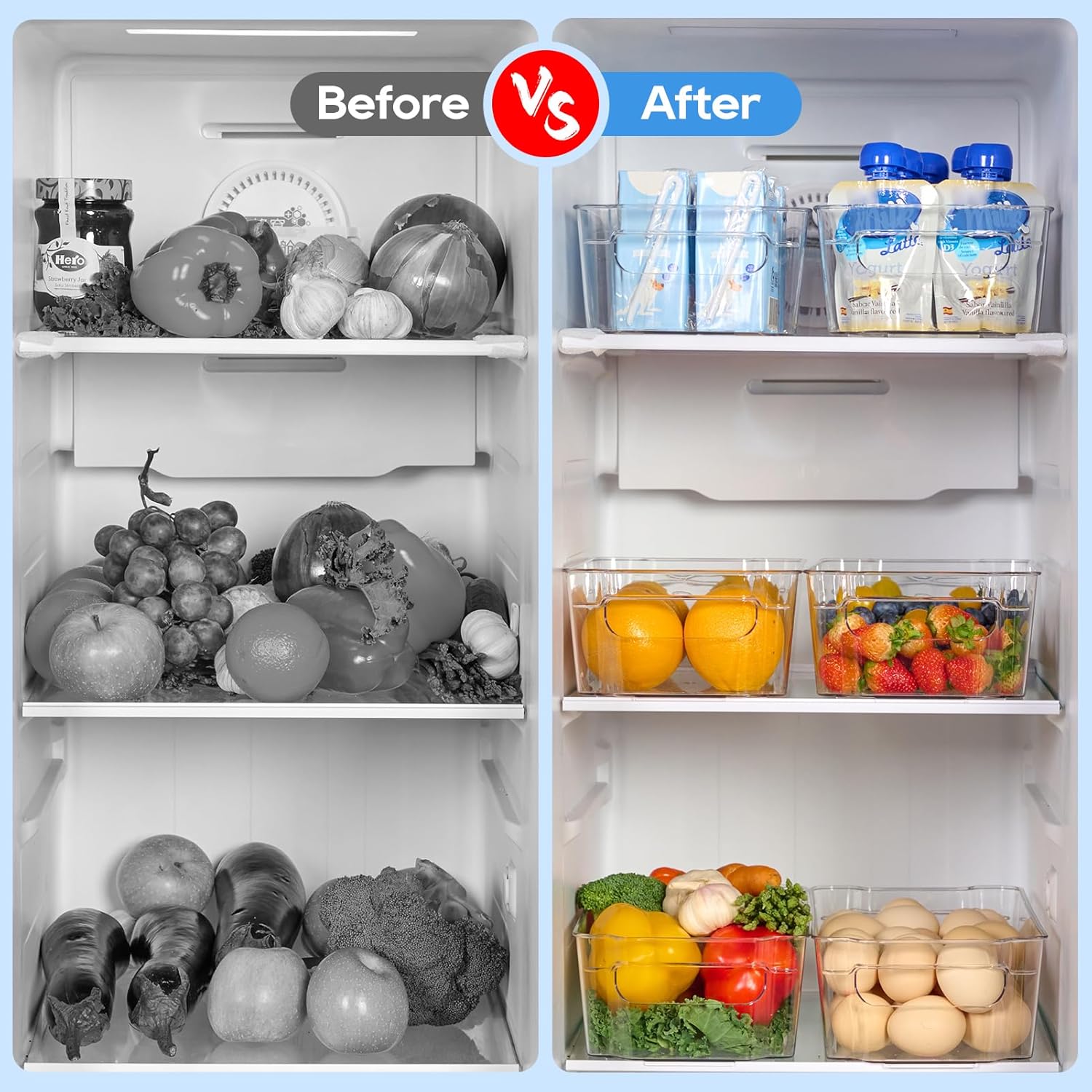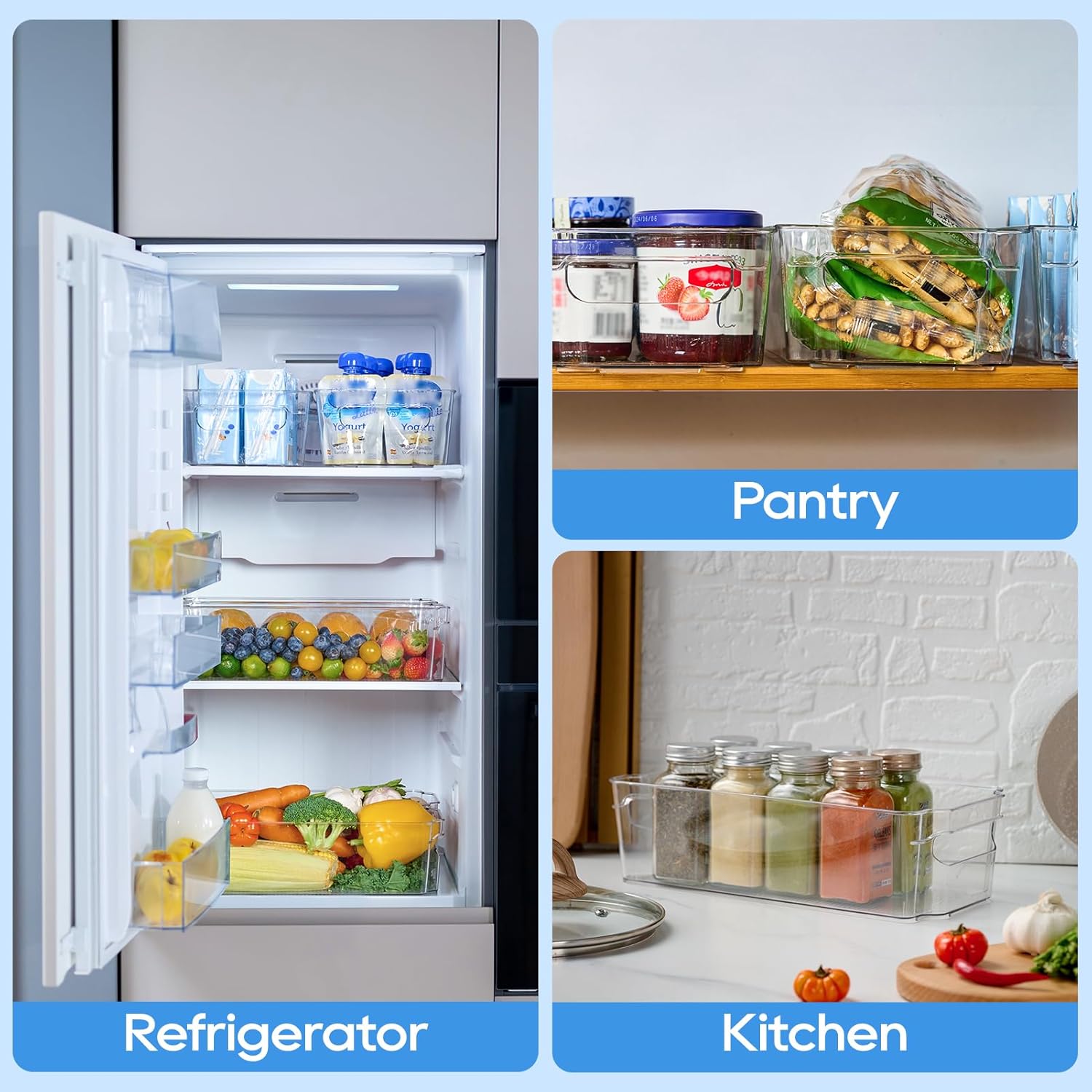 • Built-In Handles: These clear storage bins feature sturdy, built-in handles on both sides, making it easy to pull, lift, and slide them in and out of your fridge or pantry. The secure grip ensures effortless handling