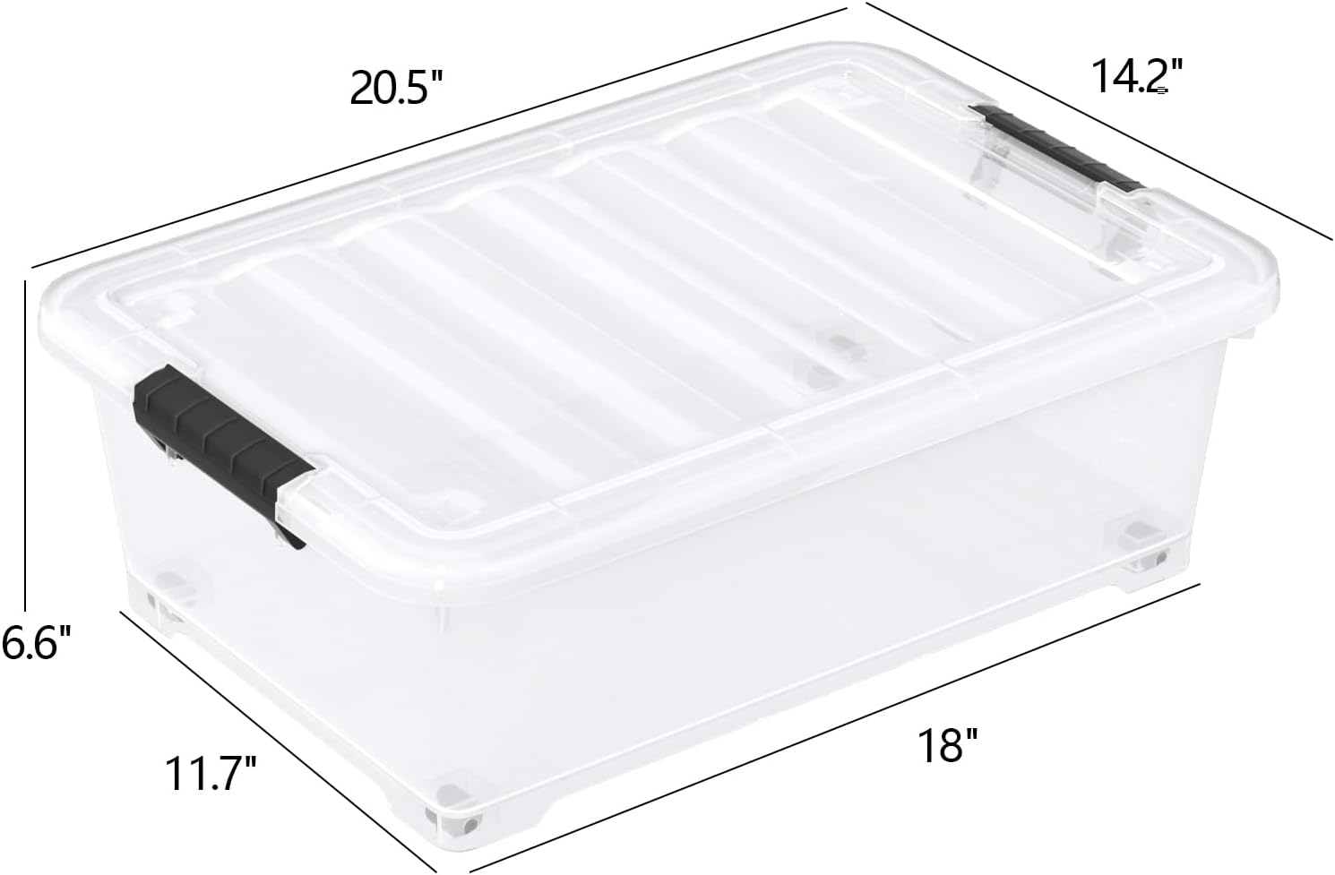 20 Quart Under Bed Shoe Storage Container Bin with Wheels for Underbed, Home or Office Organization, Set of 4