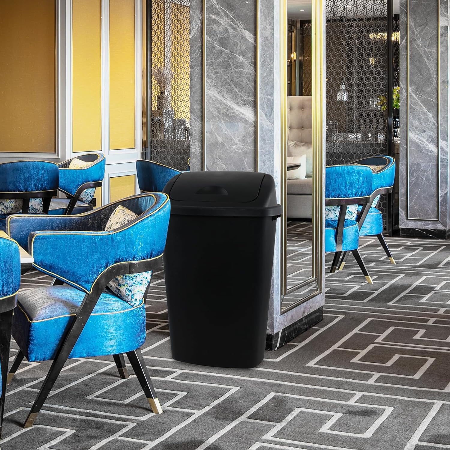 13 Gallon 4-Pack Garbage Cans with Swing Top Lid, Plastic Tall Kitchen Trash Cans, Black
