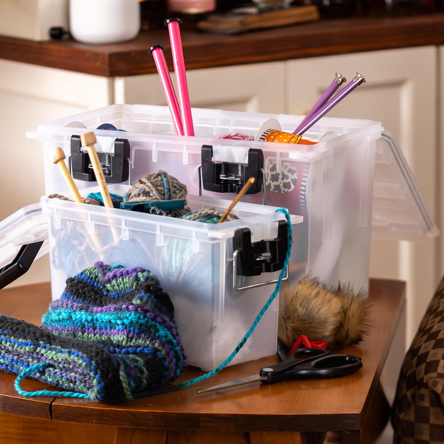 • Secure Home Organization: Plastic containers with lids built-in locking points help keep contents arts & crafts safe from curious hands or pets, while the heavy-duty plastic bin body supports regular use in high-traffic areas.
