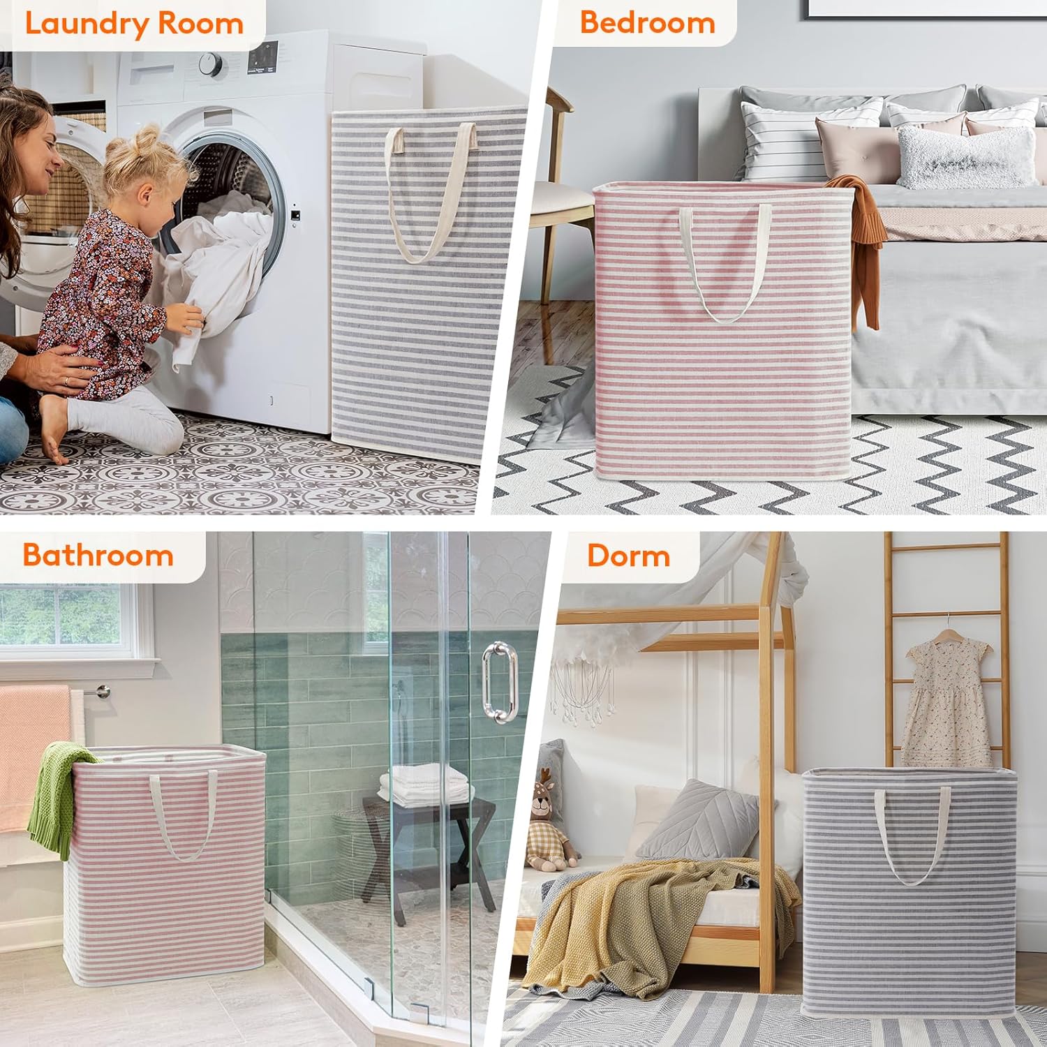 • Collapsible Design: Our laundry hampers for bedroom can be easily folded into 1 piece for a save space storage when not in use. It is ideal for laundry room, bedroom, bathroom, closet and even for college dorms, travel, rv, campers, hotel use and shopping.