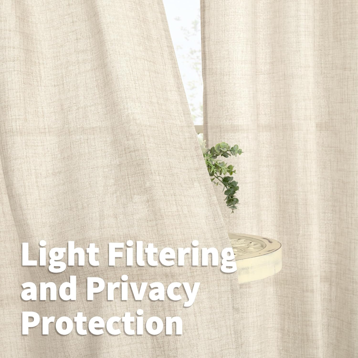 • Privacy Protection: Different from ordinary sheer drapes, our linen curtains are woven with a firmer and thicker texture that filters harsh light, while nice thickness helps provide privacy. Subtly balancing light and privacy that allow you to enjoy your leisure time.