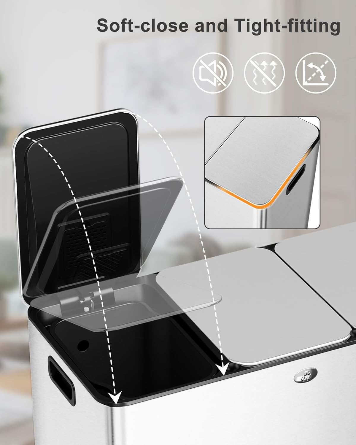 • [Odor Seal] The lid of the trash can effectively prevents odors from escaping, keeps pests out, maintains a tidy appearance, and supports efficient waste sorting
