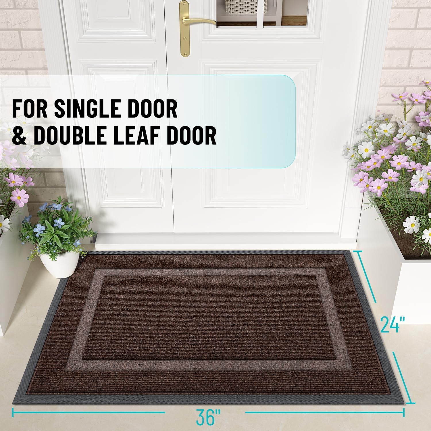 OLANLY Front Door Mat Indoor Outdoor Entrance, Waterproof All-Season, All-Weather Doormat, Sturdy Natural Rubber, Fade Resistant, Low Profile, Easy Clean Patio Porch Entryway Mat, 35x23, Dark Brown