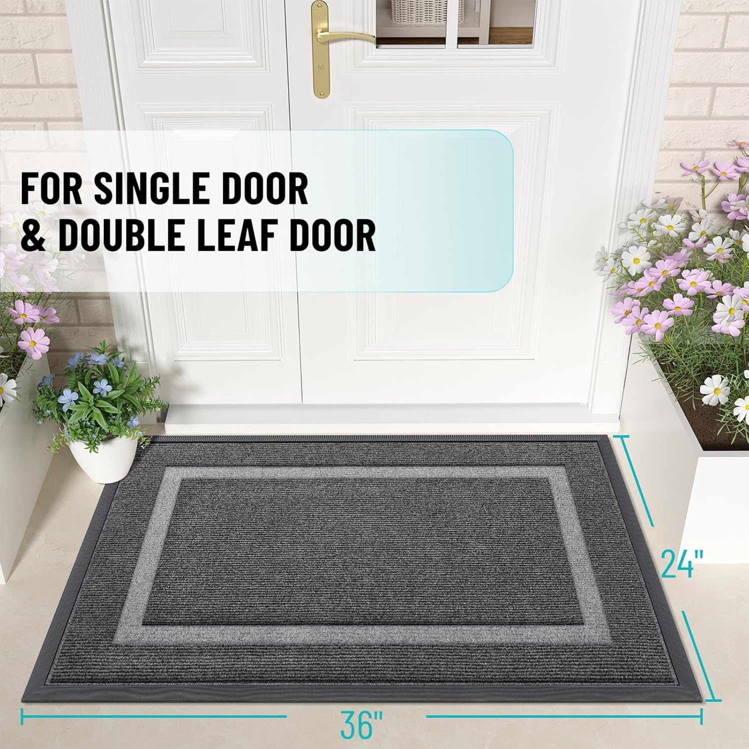 • [VERSATILE USE] OLANLY's welcome mats seamlessly blend style and practicality, perfect for indoor spaces like homes, living areas, lobbies, and offices, ensuring cleanliness. Equally suited for outdoor use, these mats excel in high-traffic areas such as front doors, sidewalks, terraces, garages, barns, and driveways. Crafted from tough materials, they are both heavy-duty and soft, offering flexibility.