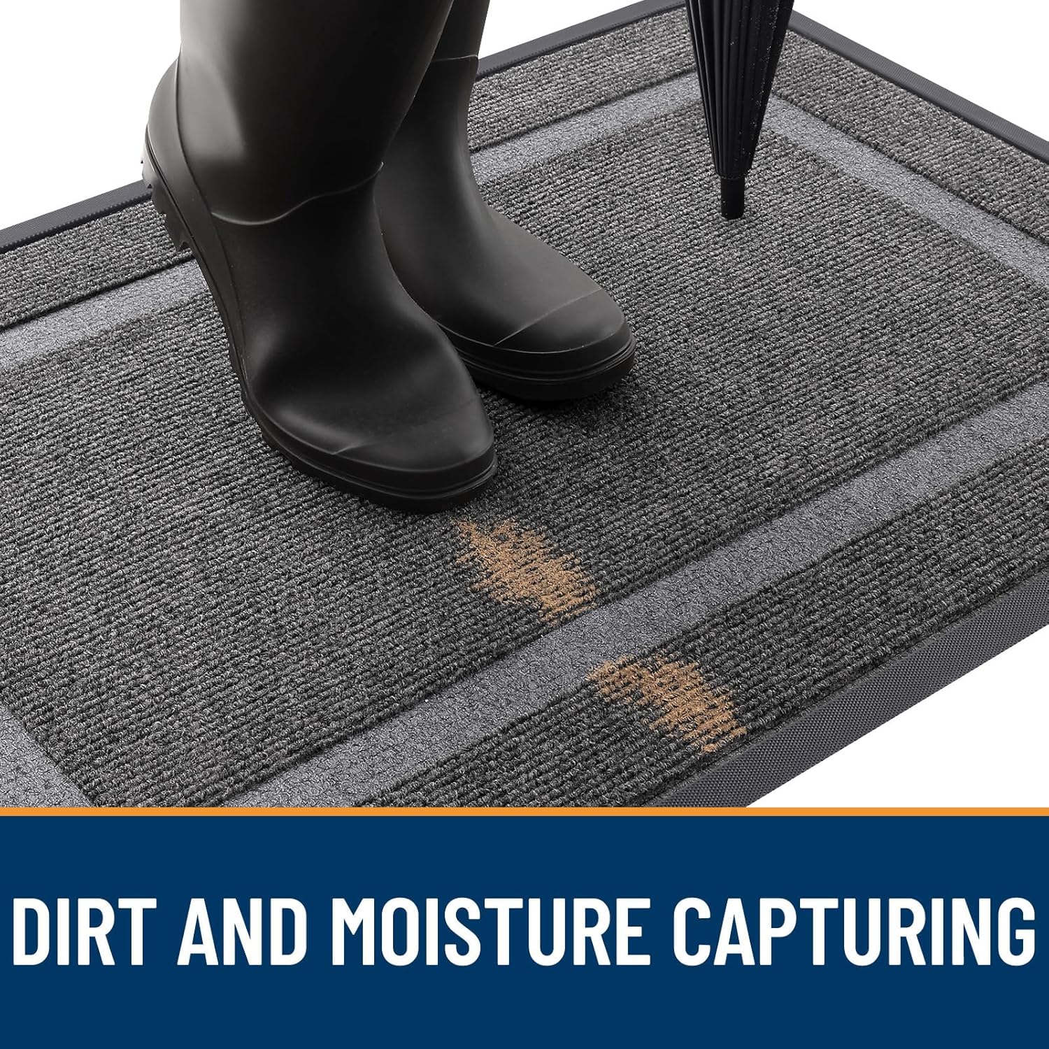OLANLY Front Door Mat Indoor Outdoor Entrance, Waterproof All-Season, All-Weather Doormat, Sturdy Natural Rubber, Fade Resistant, Low Profile, Easy Clean Patio Porch Entryway Mat, 47x23, Dark Grey