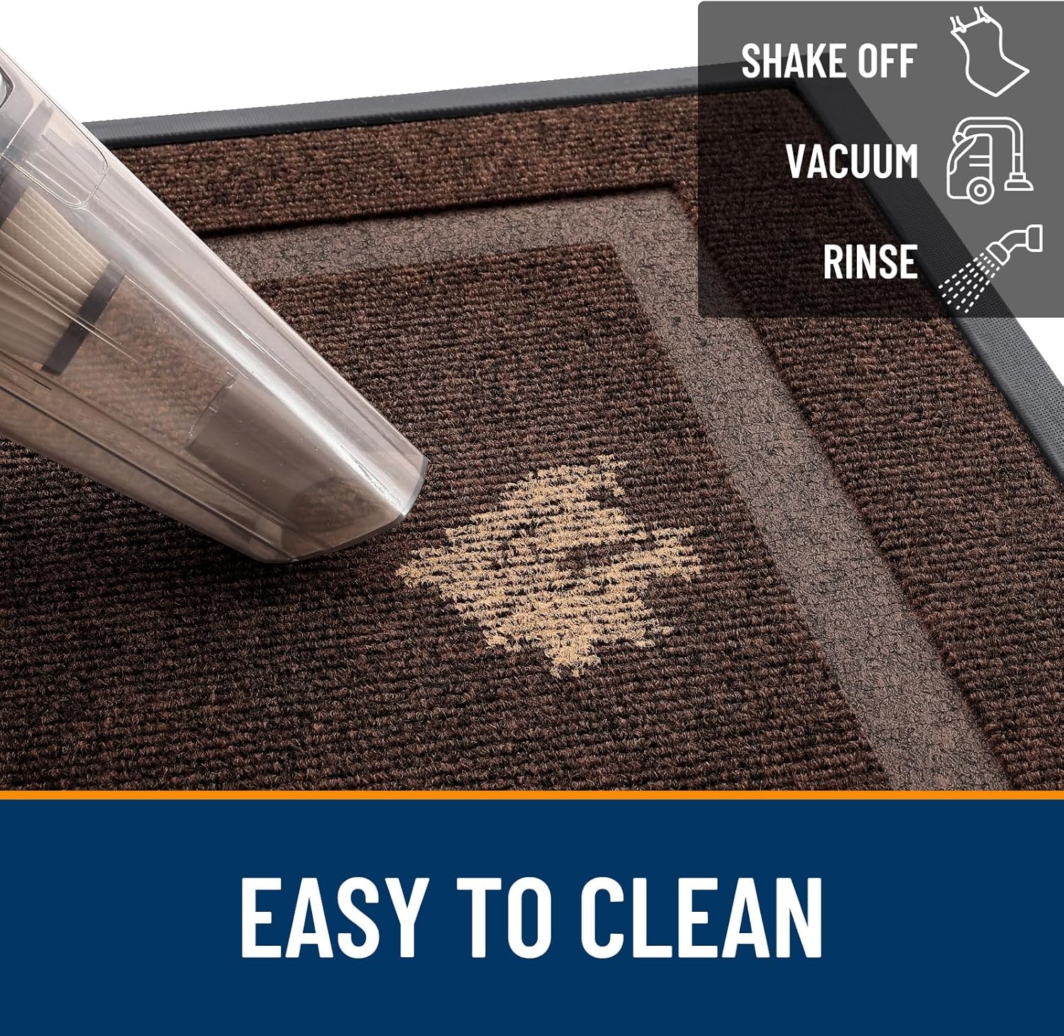 • [EASY TO CLEAN] The OLANLY front door mat is designed for quick and effective cleaning using a vacuum or traditional broom cleaning methods. Additionally, tapping and shaking the back of the doormat helps remove residual debris. For a deeper clean, rinse it with a garden hose and hang the mat in a ventilated place or dry it in a dryer. This versatile cleaning method ensures that your doormat stays clean and tidy, ready to welcome guests.