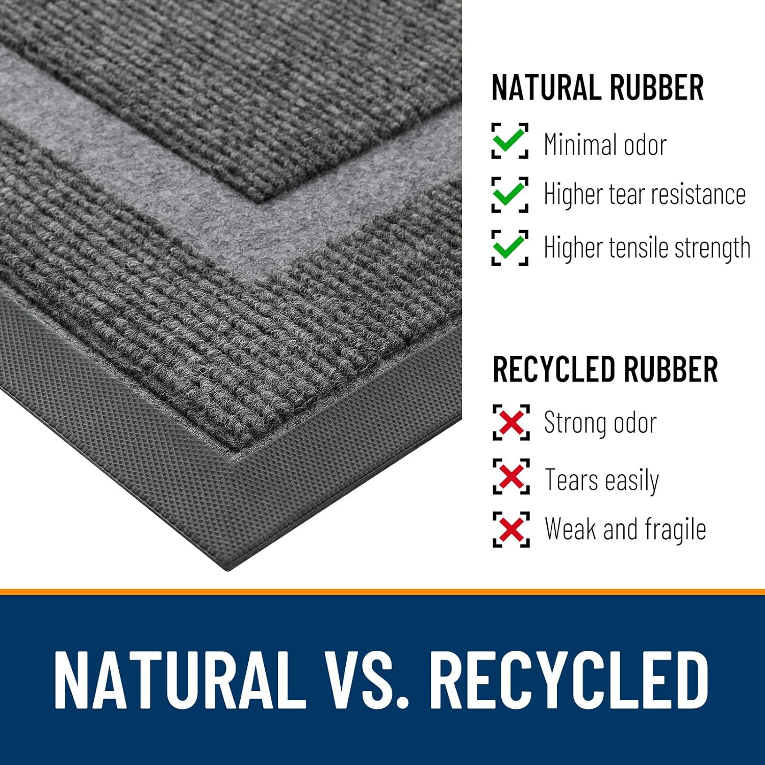 • [STURDY NATURAL RUBBER BACKING] The OLANLY heavy-duty door mat features an ultra-thin design, allowing it to effortlessly glide under most doors without jamming or curling. Crafted with a sturdy natural rubber backing, our product offers higher tensile strength, increased tear resistance, and less odor compared to synthetic rubber.