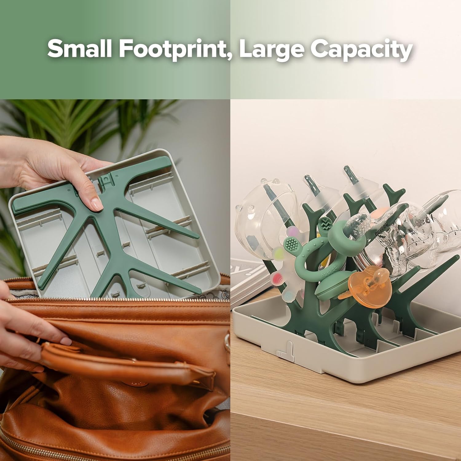 haakaa Baby Bottle Drying Rack, Space Saving Bottle Drying Tree for Bottles/Pump Parts/Pacifiers and Other Baby Essentials, Easy-Store Dryer Rack Great for Home & Travel, BPA Free (Forest Green)