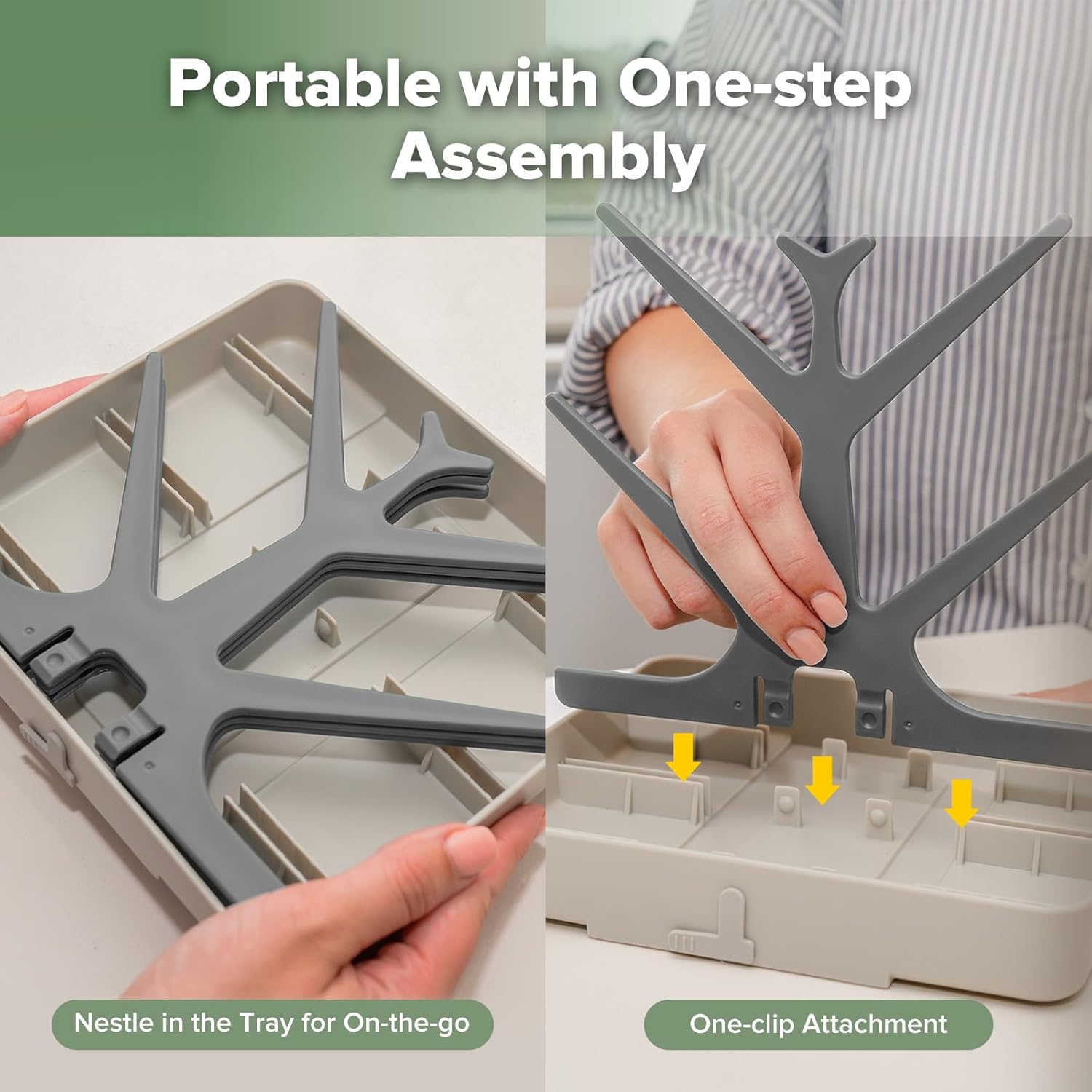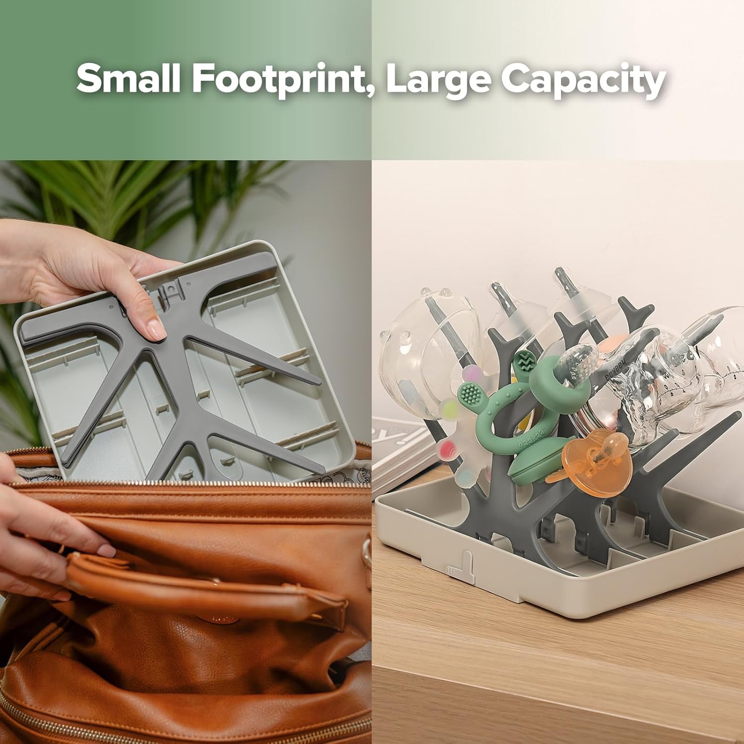 haakaa Baby Bottle Drying Rack, Space Saving Bottle Drying Tree for Bottles/Pump Parts/Pacifiers and Other Baby Essentials, Easy-Store Dryer Rack Great for Home & Travel, BPA Free (Slate Grey)