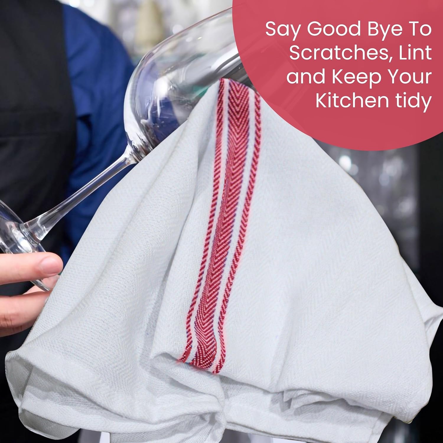 • Premium 100% Ring Spun Cotton: Crafted with soft and durable 100% ring spun cotton, these kitchen towels deliver exceptional absorbency and strength for daily kitchen tasks.