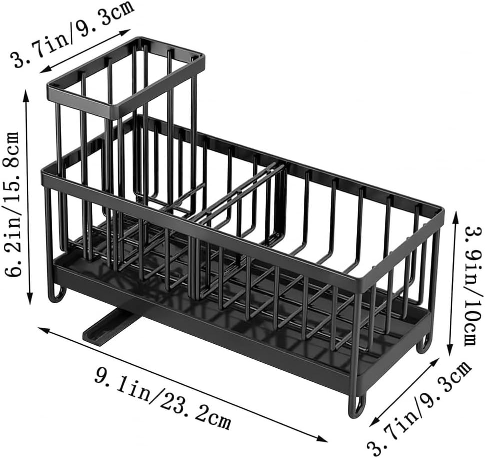 • VERSATILE USE– Ready to use right out of the box, this sink sponge holder requires no installation. Use it on your kitchen countertop, in the bathroom, or near any sink. It’s perfect as a soap and sponge holder, sink brush holder. PACKAGE INCLUDES 1 Black sink caddy for kitchen and 2 Sponge with it