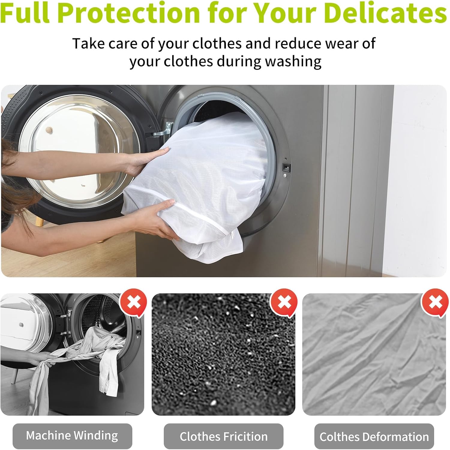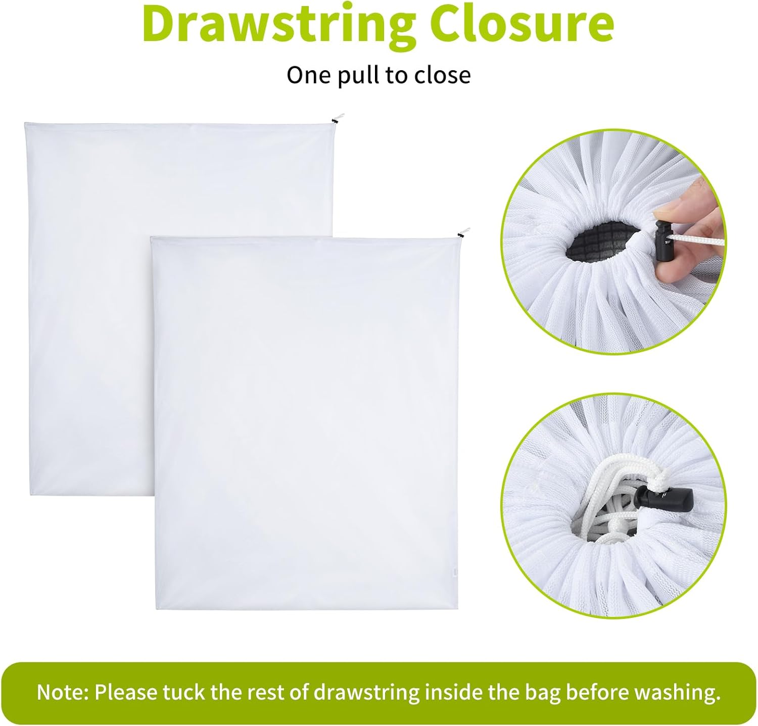 • Durable& Breathable: The extra large mesh laundry bags are made of tear-resistant and breathable polyester, ensuring long-lasting performance. Ultra soft and fine mesh allows water and detergent to get through with no snagging. Reinforced stitches ensure that it won't break after loaded or prolonged use.