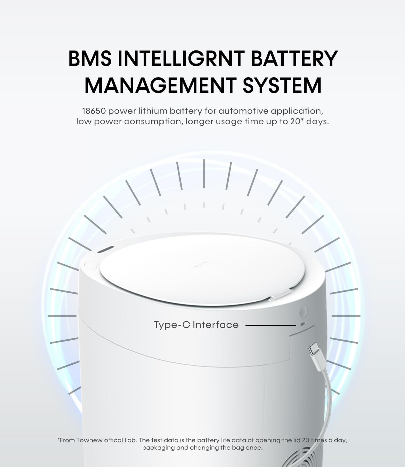 - Upgraded Battery: The living room trash can adopts the automotive-grade 18650 power lithium battery. Compared with the traditional lead-acid battery, 18650 is lighter in weight and better in performance, giving it a long-lasting battery life with a full charge that will last for 20 days.