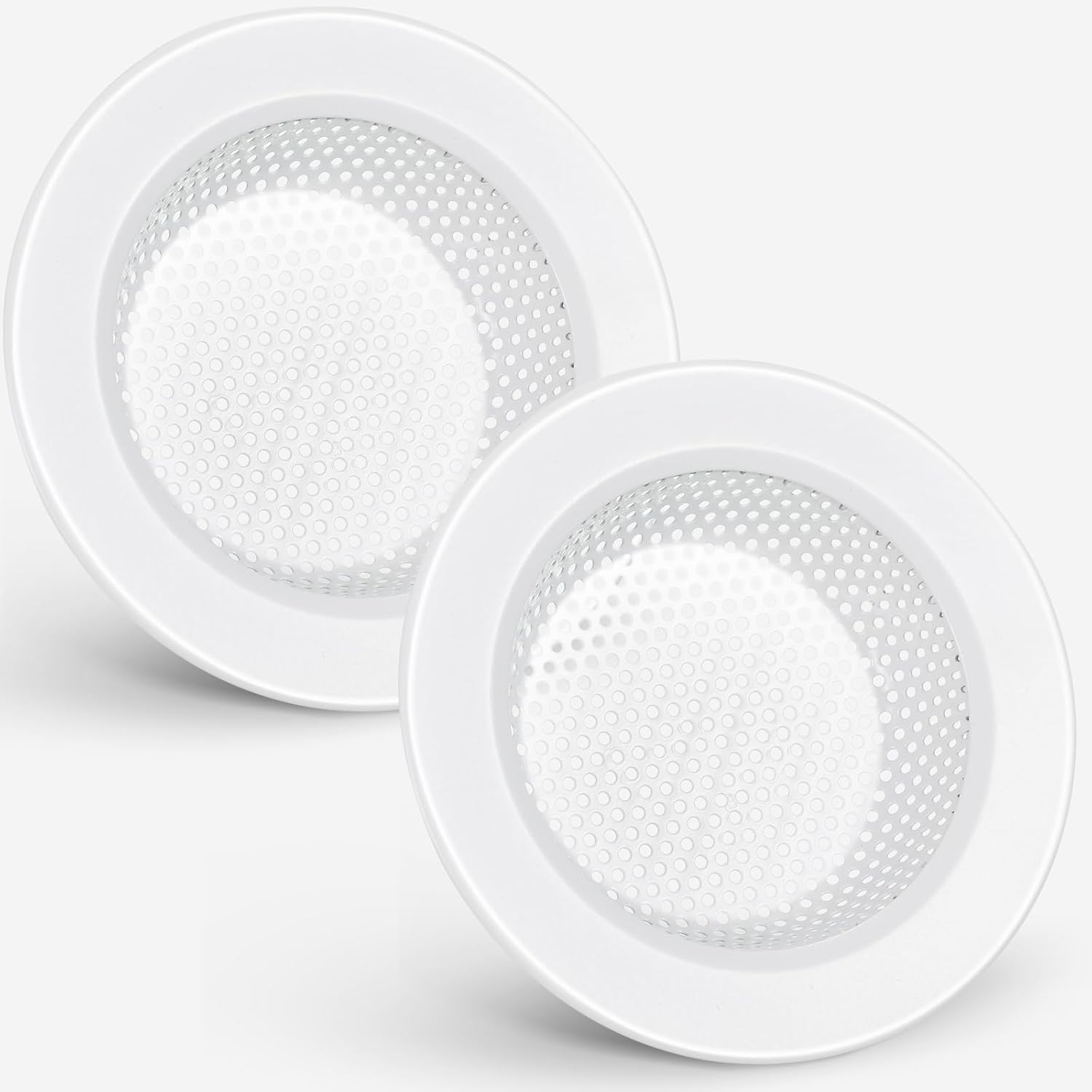Retisee 2 Pcs Sink Strainer Stainless Steel Kitchen Sink Drain Strainer Basket Cover Mesh Hair Food Catcher, Large Wide Rim of 4.4 Diameter(Porcelain White)