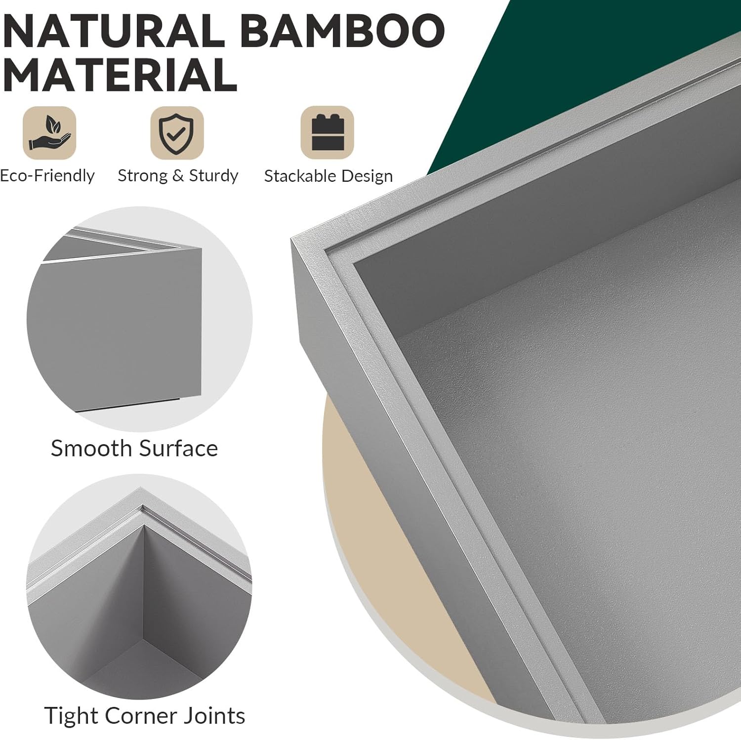 Bamboo Drawer Organizer, Extra Large Silverware Organizer for Kitchen Drawer, Stackable Utensil Organizer, 2 Pcs Toilet Tank Topper Tray, Wooden Toilet Paper Basket (Silver, 17 X 6 X 2 Inch)