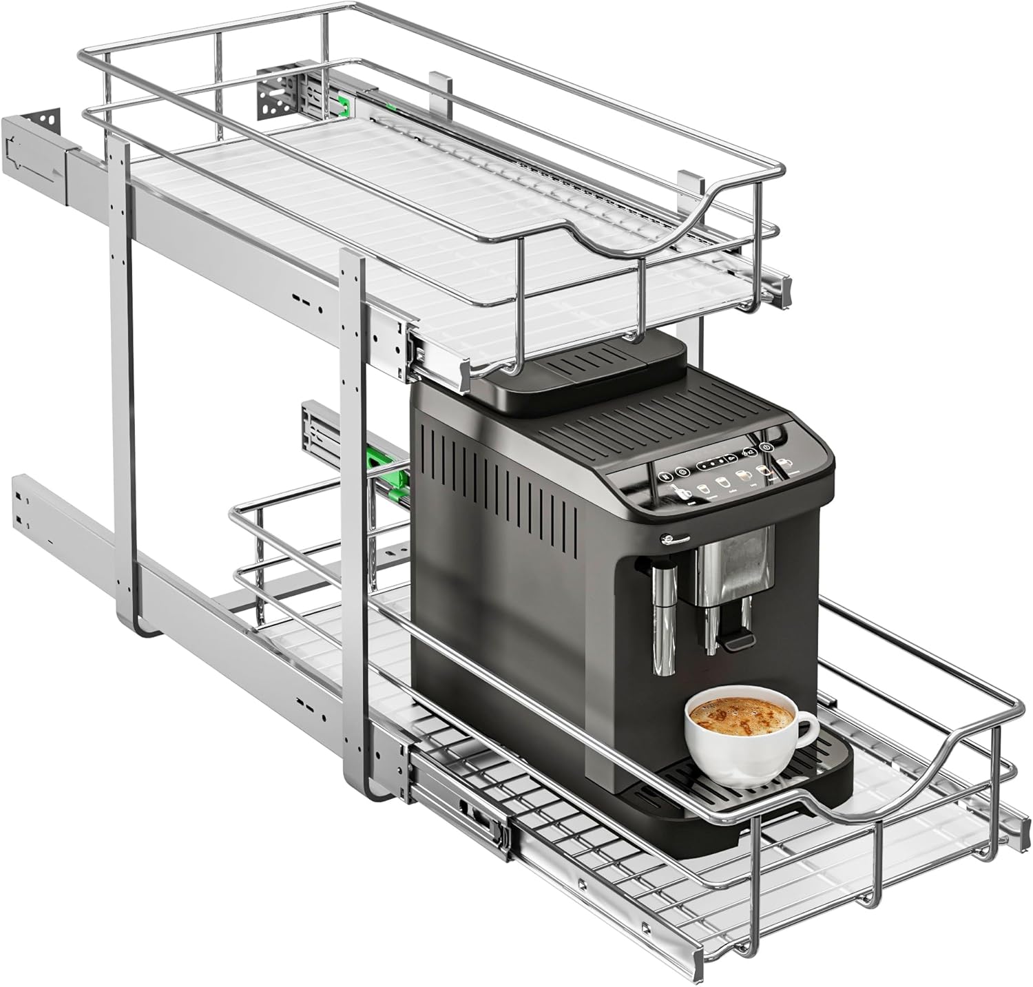 • 【Versatile Storage Solution】 Ideal as a kitchen cabinet organizer, pantry pull out shelves, or under sink storage. Two-tier design maximizes vertical space for pots and pans organizer needs while keeping everything visible and accessible.