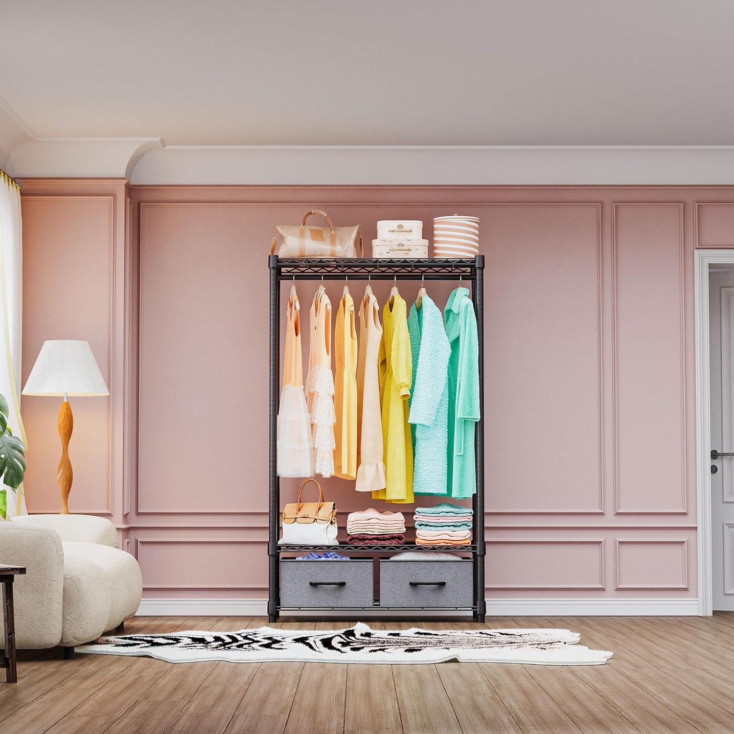 IZEUK Heavy Duty Garment Rack Wire Clothes Rack for Hanging Clothes, Metal Freestanding Closet Wardrobe Rack with 1 Rod and 2 Drawers Dark Grey 15.7" D x 35.5" W x 72.4" H