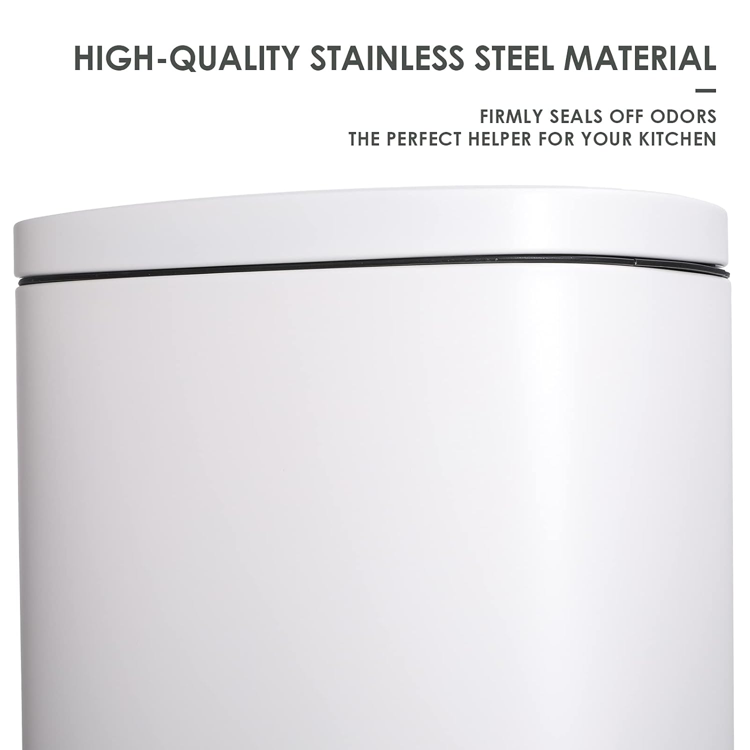 AthLike Trash Can, Stainless Steel Kitchen Garbage Can, Step Waste Bin with Hinged Lid and Removable Inner Bucket, Soft-Close, Dustbin for Bathroom Bedroom Living Room Home (White, 13.2 Gal)