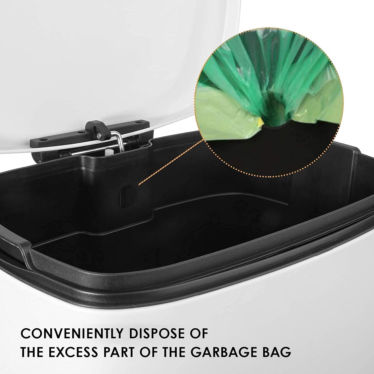 - 【MUTE CLOSING&AIRTIGHT】Kitchen Dustbin adopt ABS hydraulic deceleration technology, the lid of the trash can will fall silently without annoying popping sound, suitable to be placed in the study and bedroom. Airtight lid will seal off the odor firmly, so you don’t have to worry about the unpleasant smell emitted by the kitchen garbage in summer.