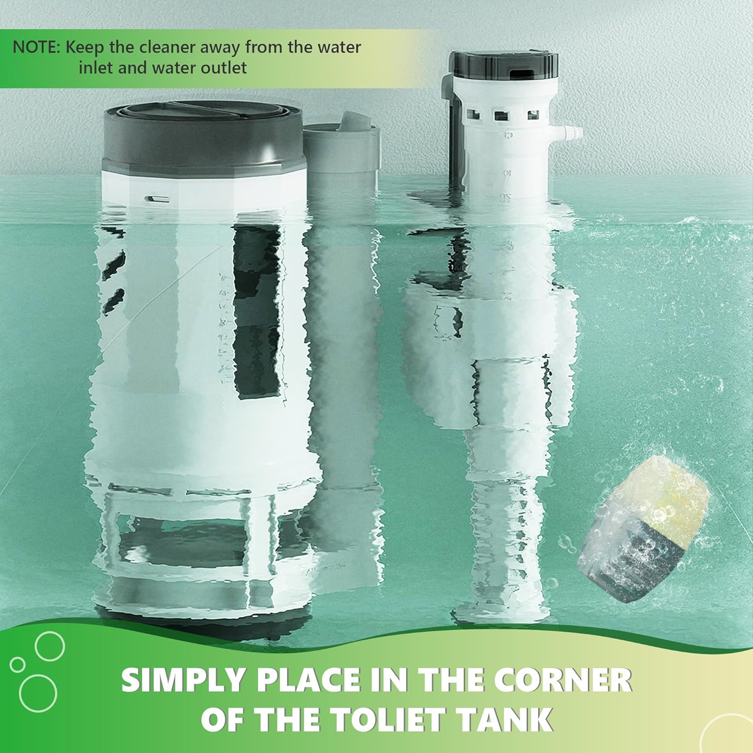• Easy to Use: Simply place a piece of toilet tank cleaner tablet into the tank (away from the spout and inlet) and let it fully dissolve for at least 30 minutes;(Please note, do not remove the water-soluble transparent protective film)