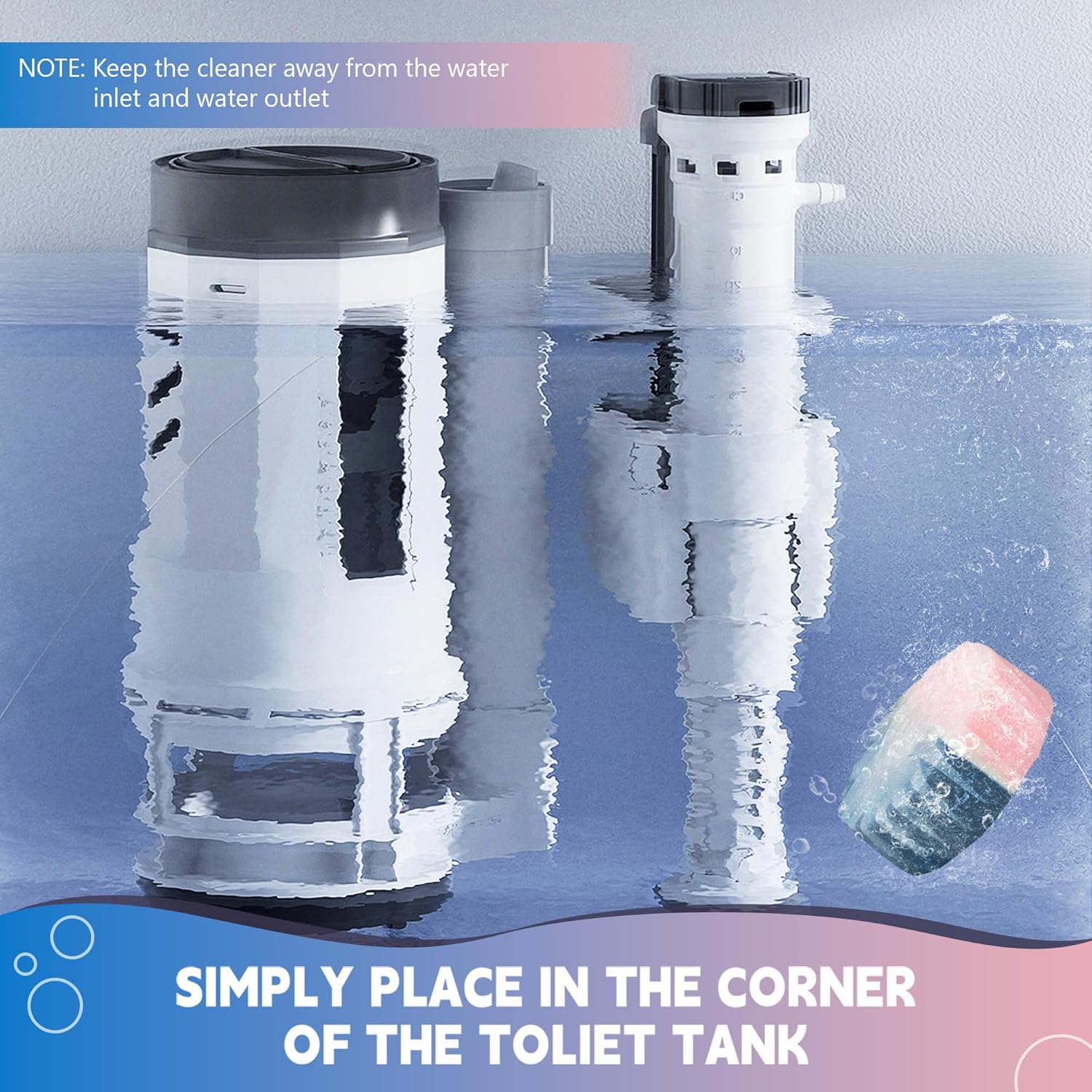 • Easy to Use: Simply place a piece of toilet tank cleaner tablet into the tank (away from the spout and inlet) and let it fully dissolve for at least 30 minutes;(Please note, do not remove the water-soluble transparent protective film)