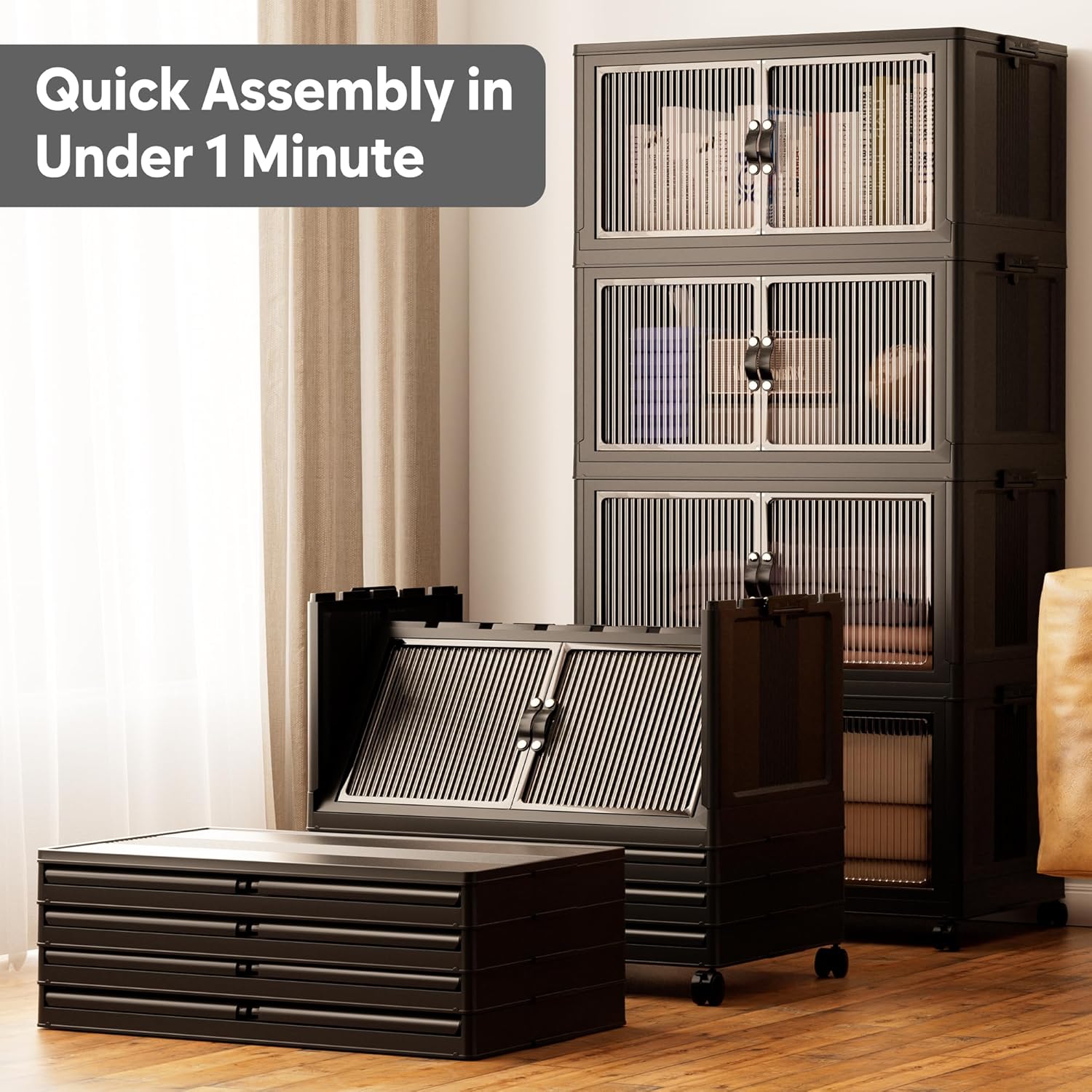 • 【High Quality & Safety】Made with high-impact polypropylene (PP), these bins ensure durability and protection for your belongings. The ABS front panel adds clarity and strength. They can also be used as a plastic storage cabinet with doors, offering extra convenience for organizing items.