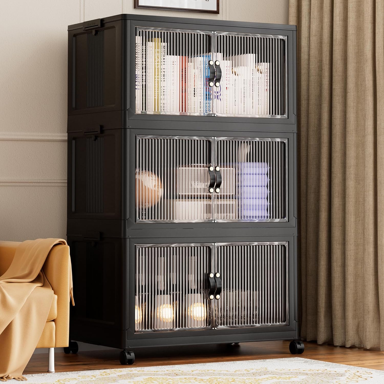 • 【High Quality & Safety】Made with high-impact polypropylene (PP), these bins ensure durability and protection for your belongings. The ABS front panel adds clarity and strength. They can also be used as a plastic storage cabinet with doors, offering extra convenience for organizing items.