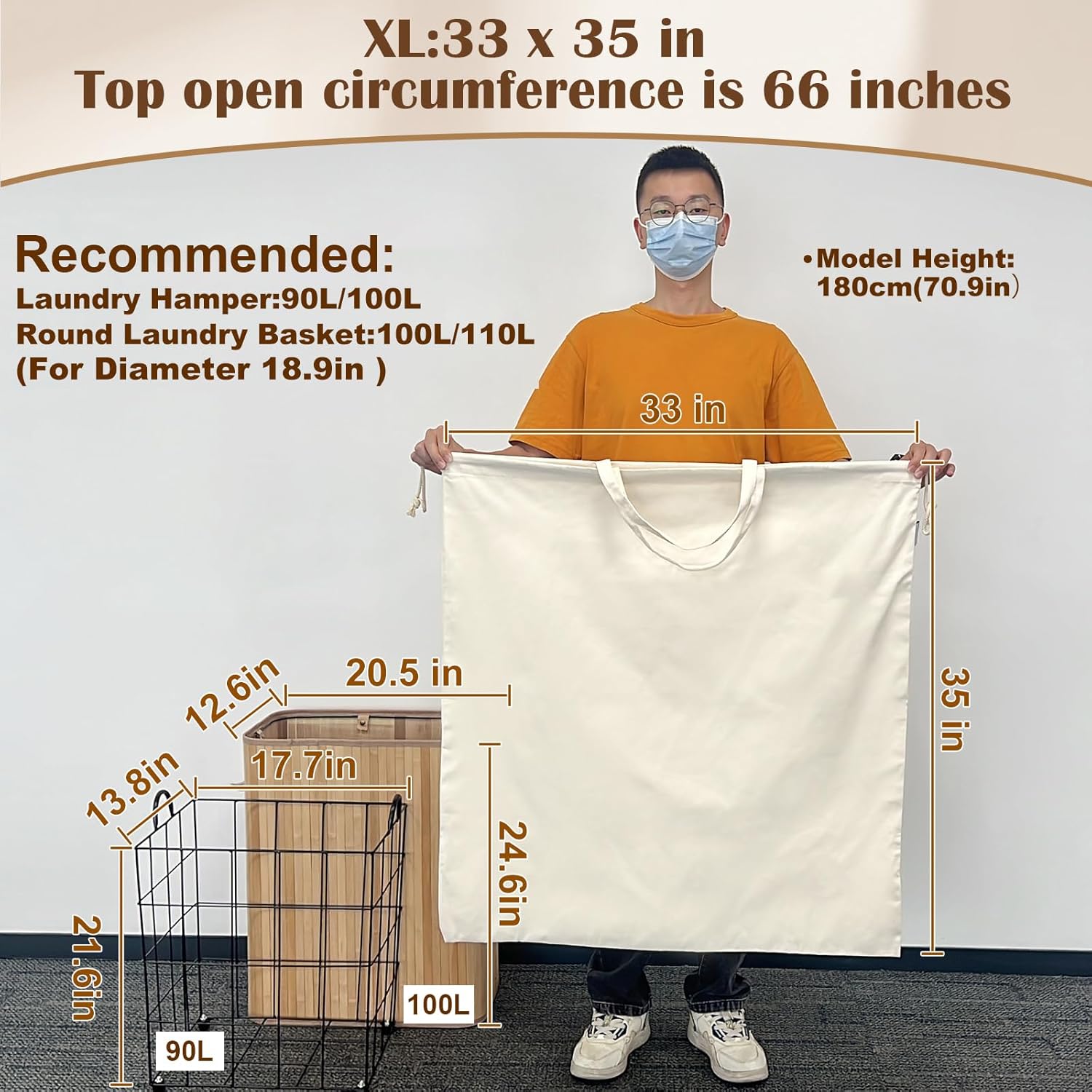 • BIG Size 33"Lx35"H: XL bag Top circumference is 66in(168cm), VERY LARGE size, fit for most 90/100L laundry hamper or diameter 18.9" round laundry basket- PLEASE VERIFY SIZE BEFORE PURCHASE