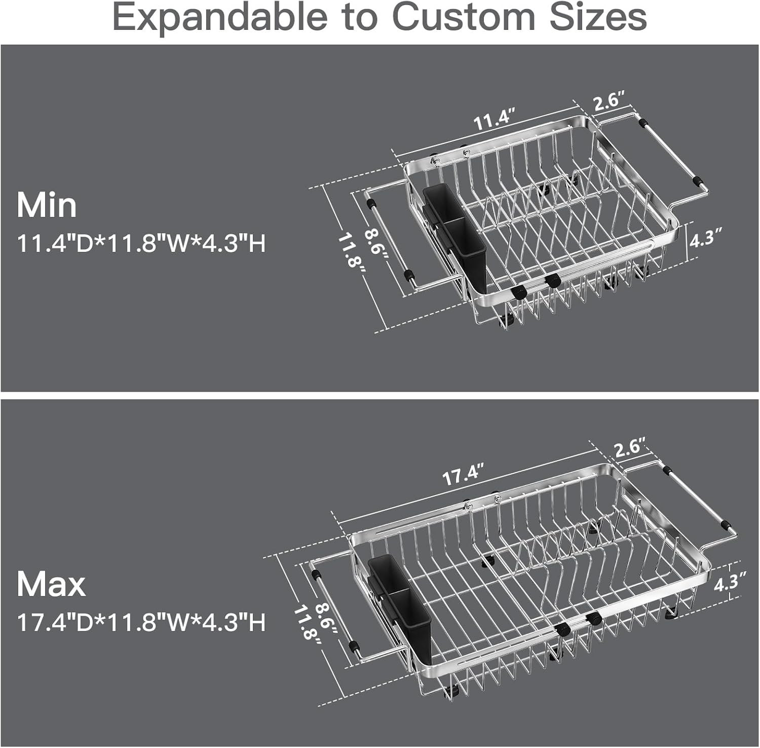 • 🔄 Expandable & Adaptable: Slide to customize this expandable dish drying rack for single/double sinks. Perfect space saving dish drying rack solution for tight spaces
