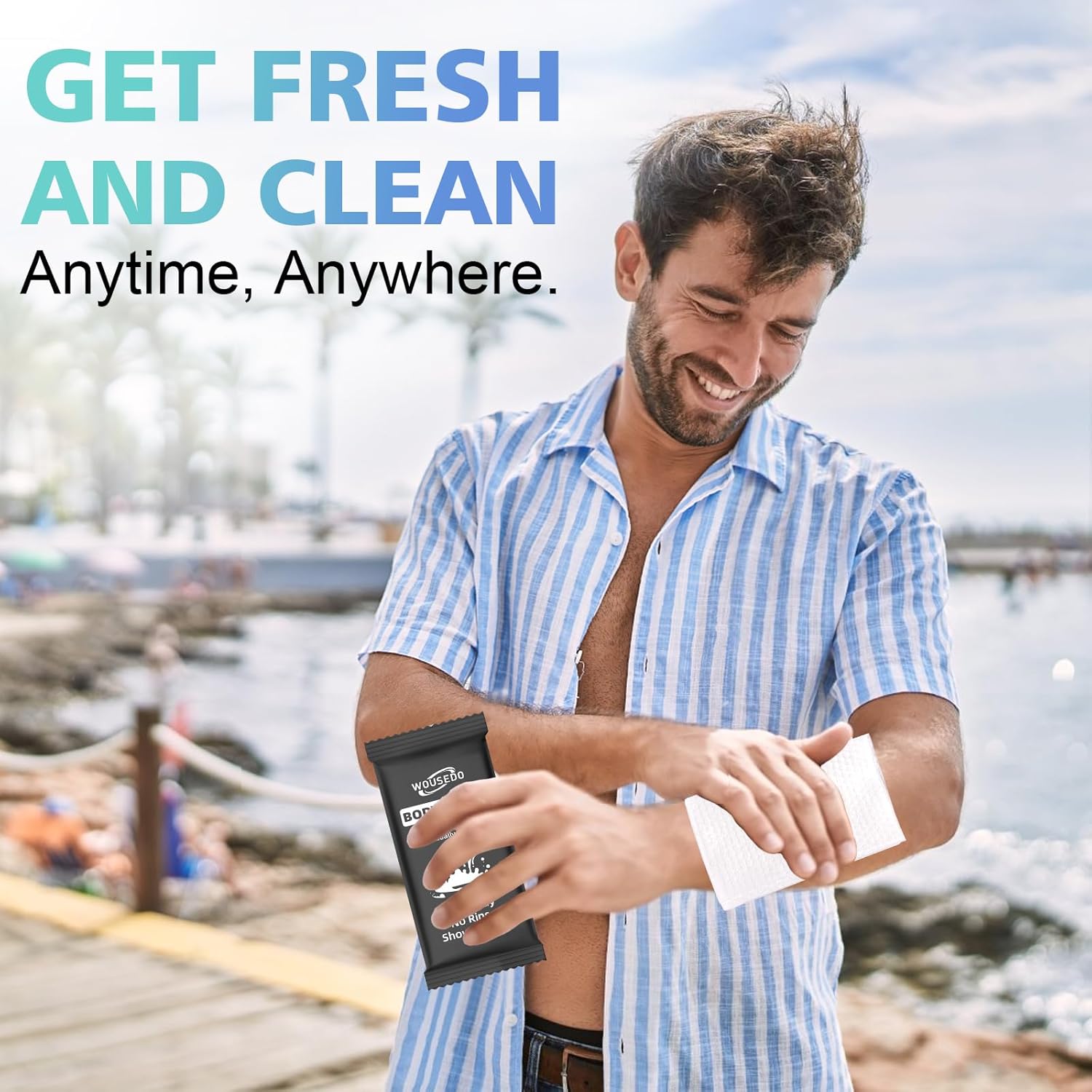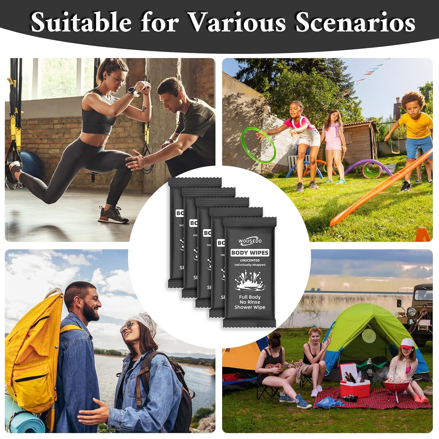• Wide Applications: Our body wipes are suitable for all age groups and can be applied in a variety of scenarios. Whether you are traveling, camping, exercising, or just need a quick refreshment during the day, our shower wipes are always handy. They are a convenient and efficient cleaning solution that fits your active lifestyle, suitable for home, office, gym and other outdoor settings.
