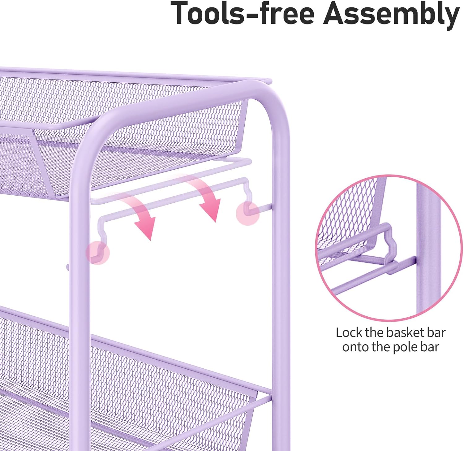 - 【Premium Quality】The mesh storage cart is made of high-grade metal material. Sturdy frame and rust-resistant process make it durable. Ergonomic handle and pole will not deform easily,smooth of surface won't scratch you.The weight capacity of each metal basket is up to 5kg(11lbs).
