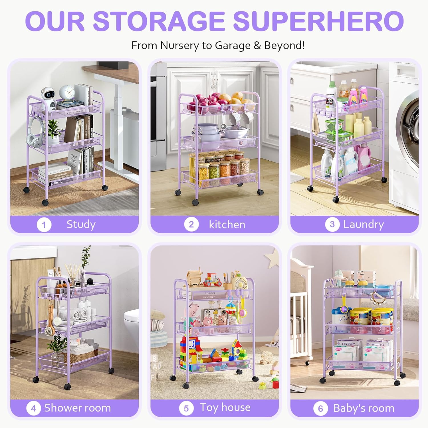- 【Multi-functional to Use】This 3-tier rolling cart provides large storage space.Use it as bathroom cart, tool cart, book cart, kitchen storage carts, dining carts, service carts and so on. It helps saving, optimization and using space. It improve the cleanliness and meets all kinds of needs at home.
