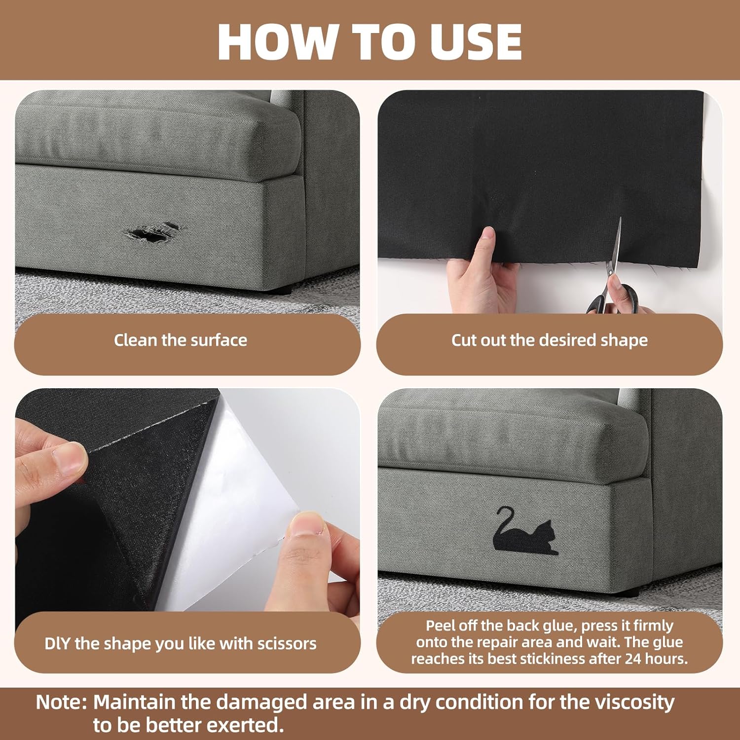 • Multi-purpose: Fabric repair kits works perfectly with fabrics such as linen, velvet . You could use sticky fabric on items like old furniture, couch, sofa, car interior, etc.
